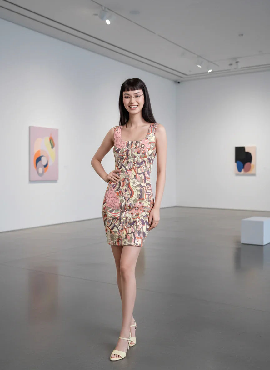 なめらかでシルクのようなスキューバニットの贅沢な肌触りを堪能できる、このAmaiドレスは、動きを妨げません。魅惑的なプリントと洗練されたカラーパレットが、春夏の冒険のストーリーを囁きます。快適さとシックさが見事に融合したこのドレスは、間違いなくあなたの次のマストハブとなるでしょう。