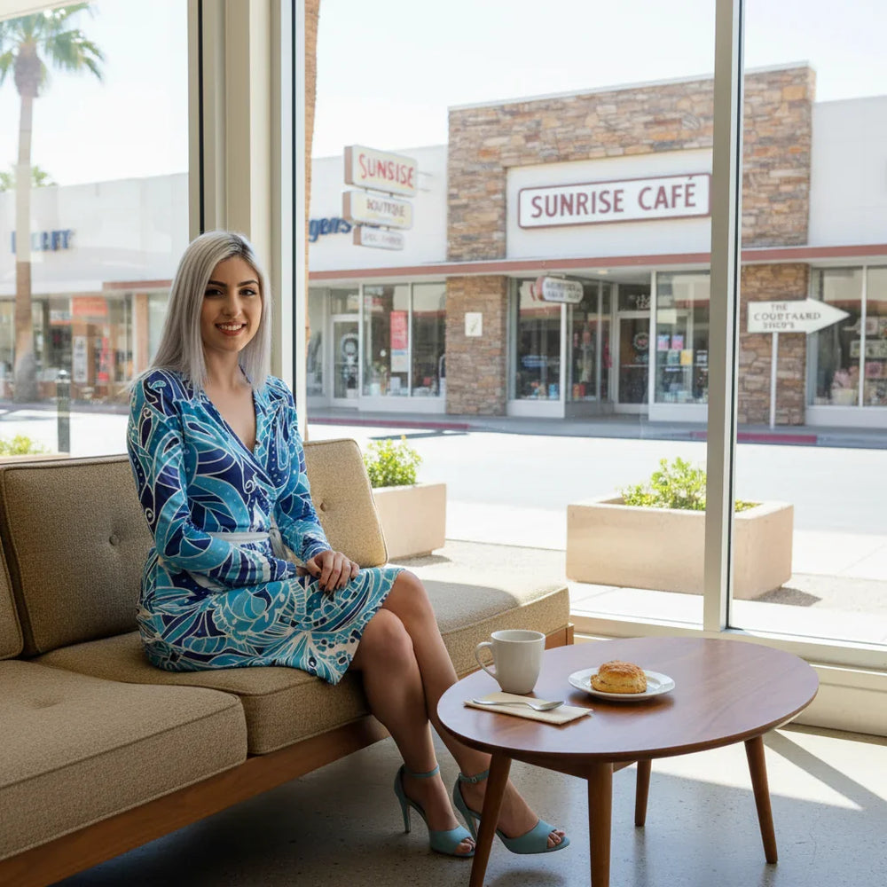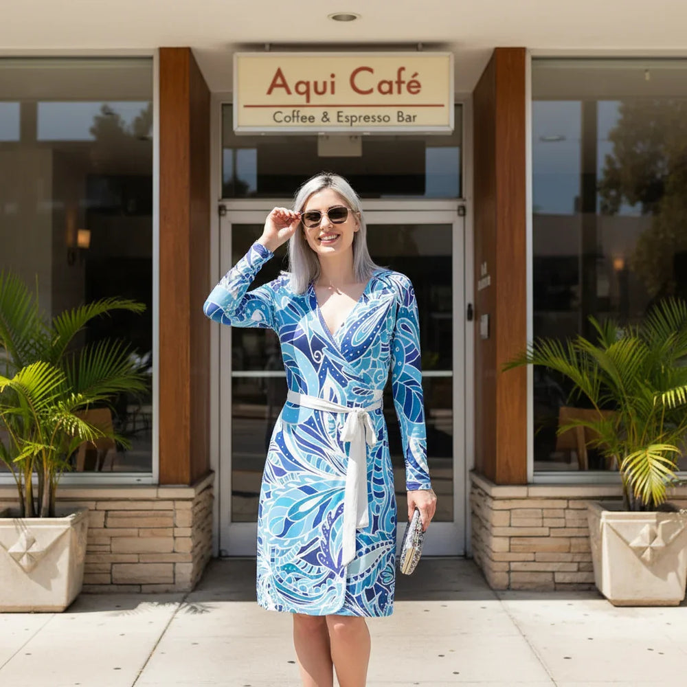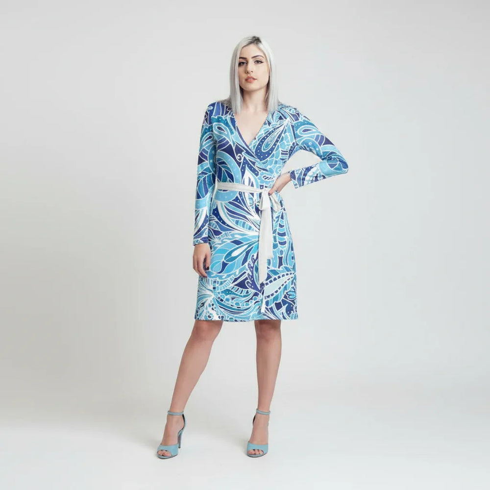 Aquiプリントパターンのカラーハイライト:ピクトンブルー、スチールブルー、サファイアブルー、ホワイト、キュリアスブルー