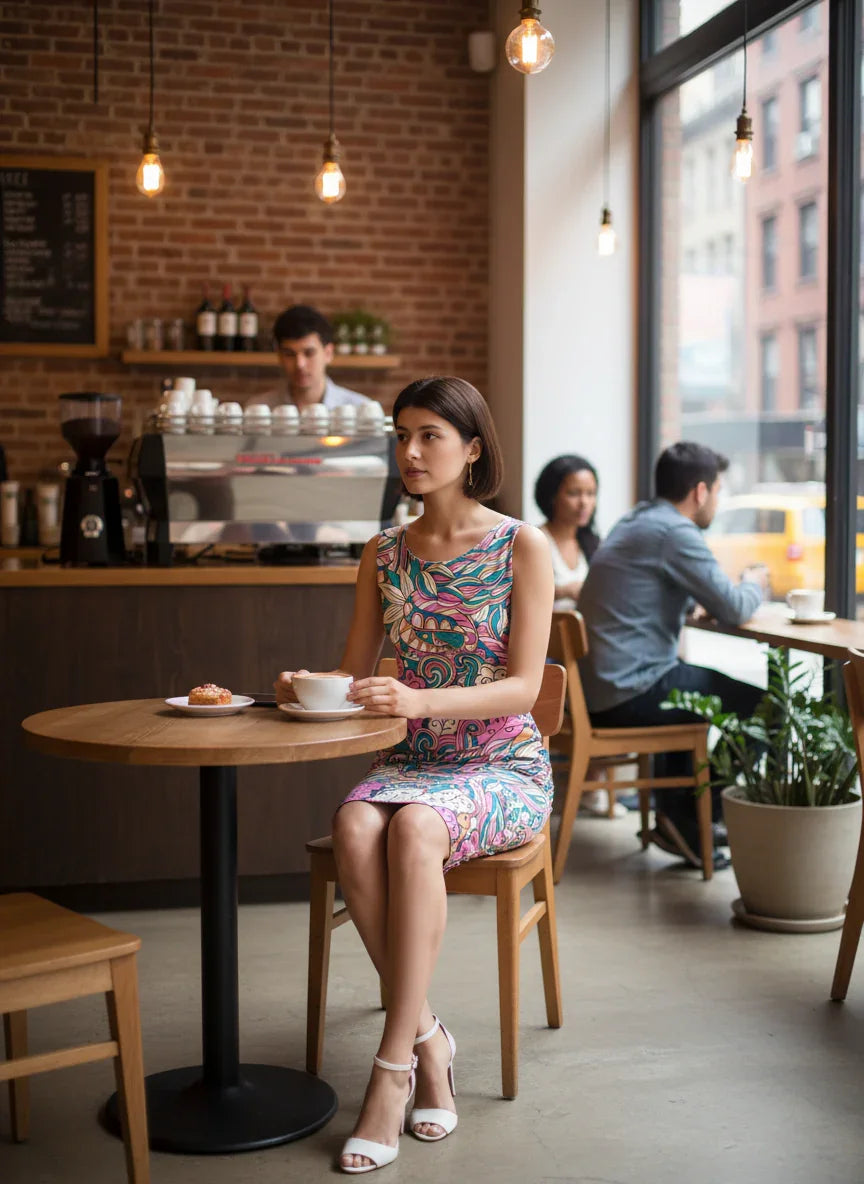 カジュアルでありながらエレガントなシースドレスの贅沢なスタイルで、純粋なラグジュアリーをご体験ください。魅惑的なアラン模様と鮮やかな色使いが特徴のこのドレスは、春夏の冒険のスピリットを体現しています。