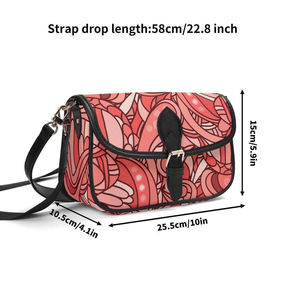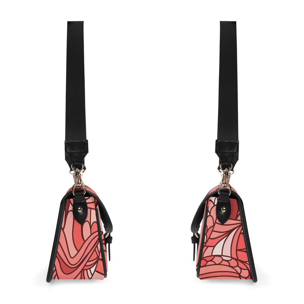 鮮やかで洗練されたデザインのクロスボディバッグで、スタイルをワンランクアップさせましょう。毎日の装いにポップなカラーとアーティスティックなセンスを取り入れたい方にぴったりのこのバッグは、コーラル、ピンク、レッドの繊細なホワイトのアクセントが効いた、複雑で流れるようなラインが魅惑的なデザインです。