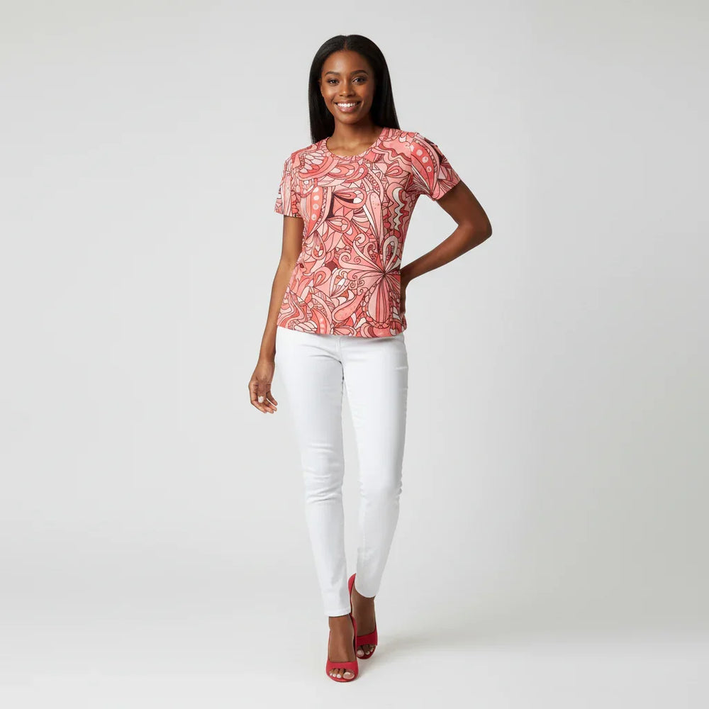 Citraのこのゴージャスな抽象的な花柄Tシャツは、まさに圧巻!体にフィットする快適なシルエットで、次の頼れる一着となるでしょう。