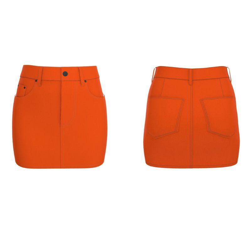 この贅沢なオレンジ色のストレッチデニムのミニスカートで、洗練された多用途性を満喫してください。ワードローブに鮮やかな色彩を加えたり、コペンハーゲン プリント シリーズと組み合わせて洗練された洗練された外観にするのに最適です。