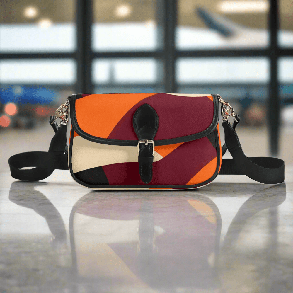 このシックなアクセサリーは、オレンジ、バーガンディ、クリーム、ブラックといった鮮やかな色合いの大胆なマルチカラーデザインが特徴で、どんな装いにもさりげなく鮮やかな彩りを添える、存在感のあるアイテムです。鮮やかでレトロな雰囲気のパターンが、周りの視線を釘付けにしてくれます。普段の装いに個性をプラスするのに最適です。