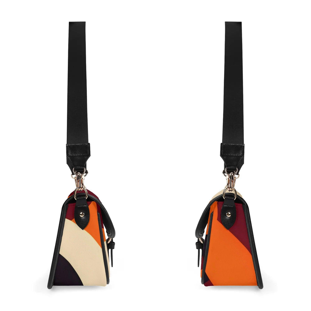 このバッグは、革新的なコペンハーゲンモチーフを体現しています。ディープローズウッド&ジャガーブラック、鮮やかなインターナショナルオレンジ、そしてクリーンなピーチクリームの贅沢な色彩が、流れるような自然なフォルムと巧みに織り交ぜられています。抽象的なパターンは、洗練された現代的な美意識を暗示し、20世紀半ばの抽象芸術の精神を想起させます。鮮やかな色彩のコントラスト、流れるような曲線とシャープなエッジの相互作用が、魅惑的で洗練された、鮮やかな視覚的リズムを生み出します。このデザインは、芸術的で表現力豊かなファッションセンスを称えるだけでなく、ドレスをステートメントピースへと昇華させ、自信とモダンな雰囲気を醸し出します。