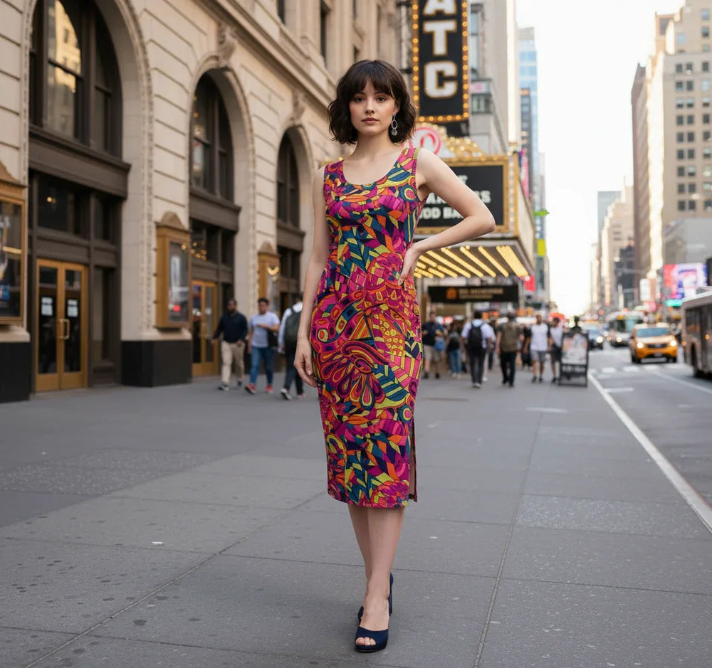 プリント柄:ボヘミアン、抽象、万華鏡、サイケデリック、渦巻き、曲線、幾何学模様、大胆なダークマルチカラー