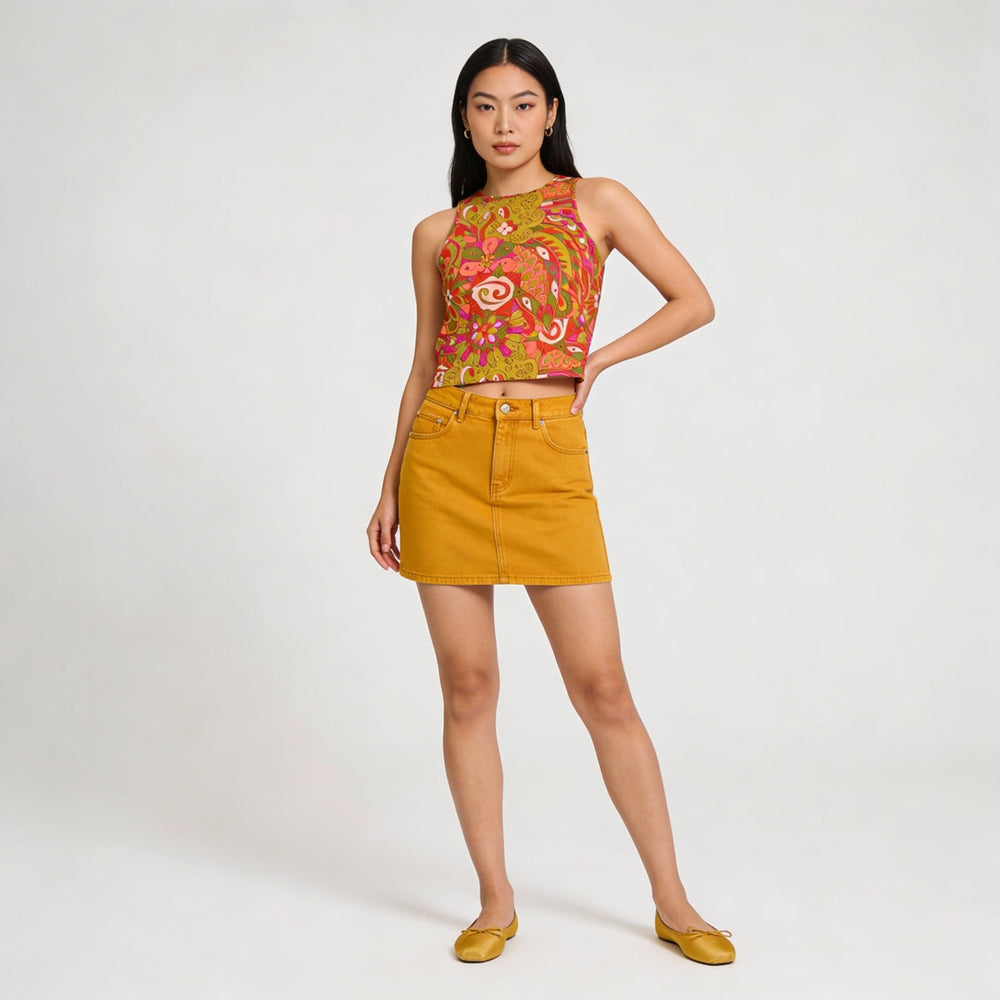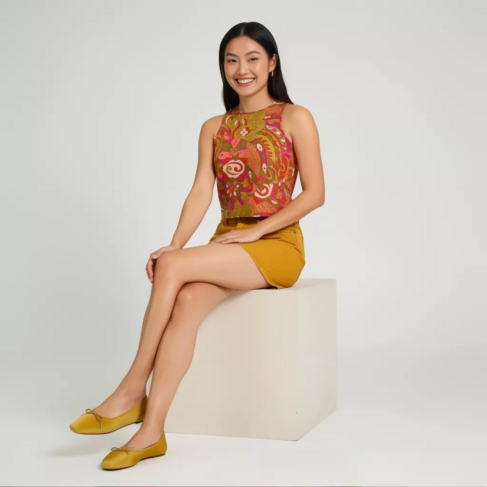 ミナ クロップドタンクトップに一目惚れしたなら、きっとその理由が分かります! 鮮やかなカラーパレットに映える、レトロなペイズリー柄のミナプリントは、まだほんの始まりに過ぎません!