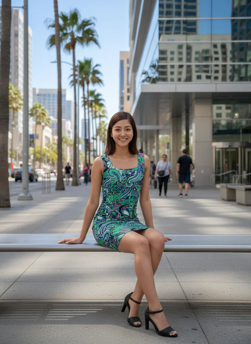スプリンググリーン、アウタースペースブルー、ソフトピーチ、コーンフラワーブルー、マルベリーバイオレット、ベイリーフグリーン、そして大胆なブラック。魅惑的な色彩のブレンドが、この洗練されたフィットドレスに自然に溶け込んでいます。それぞれの色合いは、洗練された個性を醸し出すよう、厳選されています。