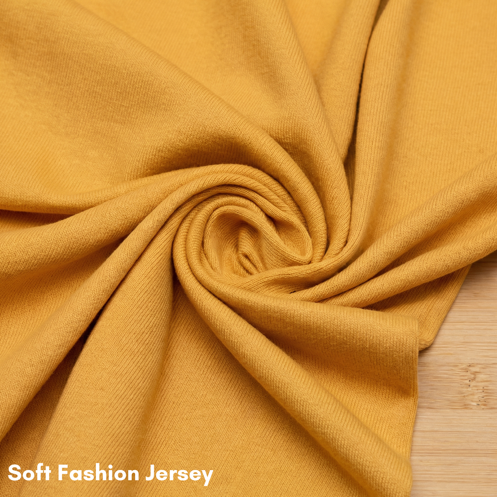 ファッションジャージー:柔らかくしなやかなこのジャージーは、美しい重量感とドレープ感があり、カジュアルなドレスに最適です。よりリラックスしたボディコンドレスをお探しなら、このジャージー生地が最適です。