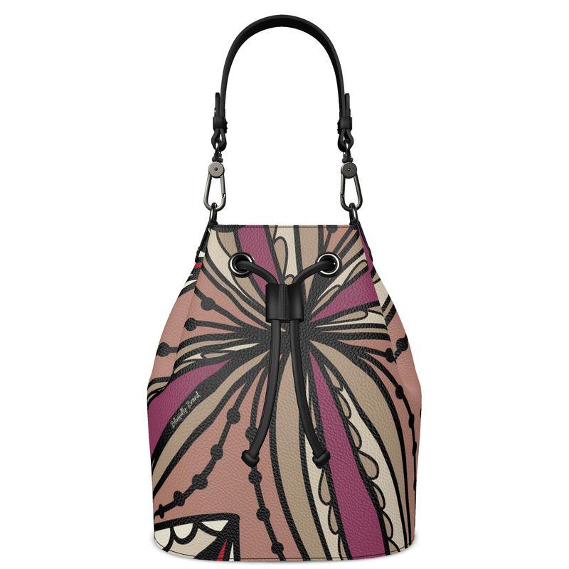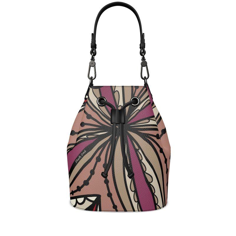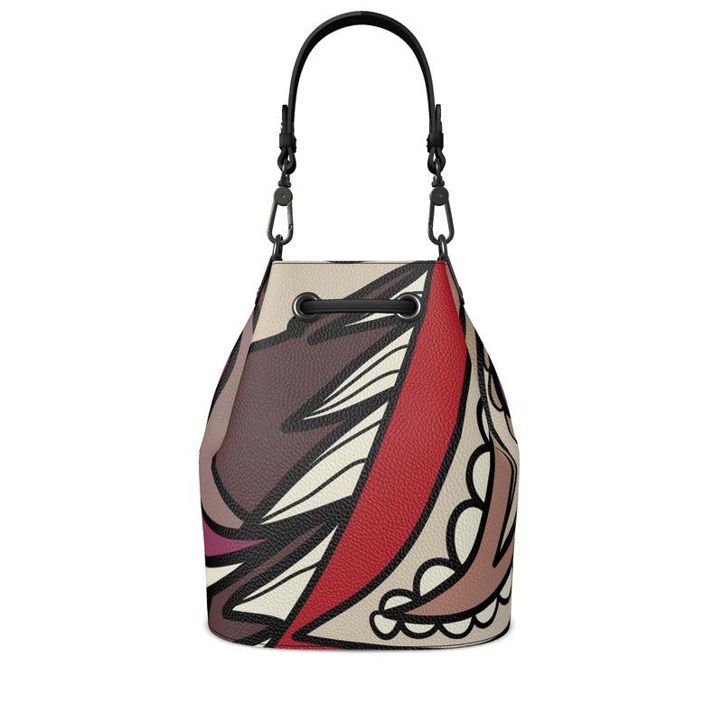 あらゆる機会にぴったりのサイズの典型的なアクセサリーであるこの手作りのUnia レザー バケット バッグは、どこへ行っても華やかな印象を与える見事な抽象的な花柄のデザインを誇ります。