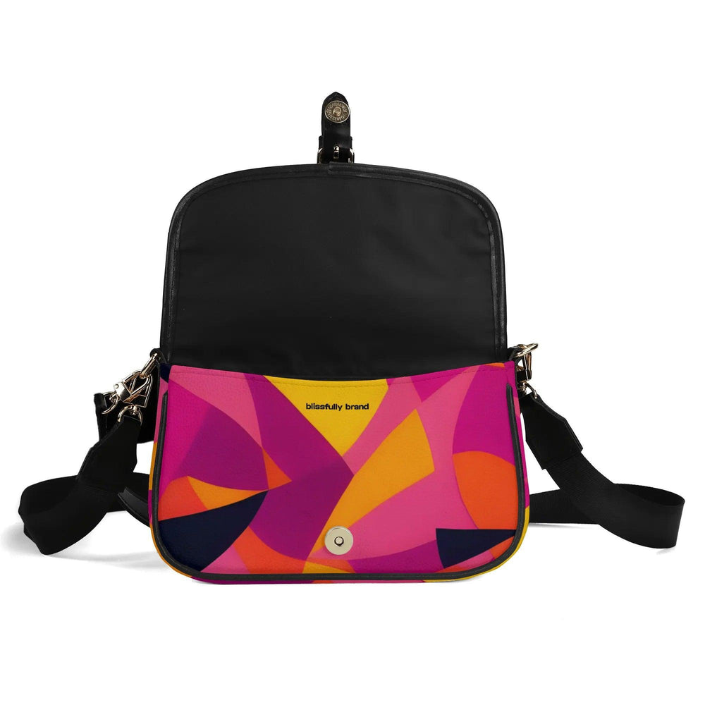 カラフルでスタイリッシュなショルダーバッグは、どんなシーンにもぴったり。アクセサリーに鮮やかなアクセントを添えてくれます。ピンク、オレンジ、イエローの鮮やかな色合いで描かれた、印象的なアブストラクトなデザインに、洗練されたブラックのアクセントが加わり、ファッションセンスを格上げします。ダイナミックなパターンと大胆なカラーリングは、様々なコーディネートにマッチし、毎日の装いに彩りを添えます。