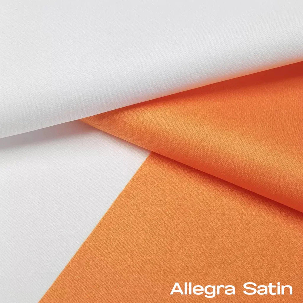 The draping of this beautiful poly-blend, sateen faced fabric is smooth and fluid, falling easily over the hands and the body. The front face texture of the material is silky soft with the back having more of a matte, grainy texture. This gives a shiny outward appearance and a slightly stiff yet still soft feel.