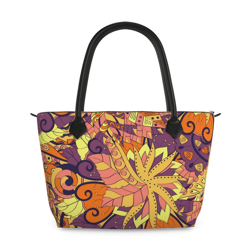 Elevate your everyday style with the Aki Zip Top Woven Canvas Bag, a masterpiece of artistic flair and functional elegance. Featuring our mesmerizing Aki pattern—a vibrant, psychedelic fusion of swirling autumnal leaves in hues of fiery orange, deep purple, and golden yellow—this bag captures the essence of bold, free-spirited design, evoking the energy of a psychedelic dreamscape.