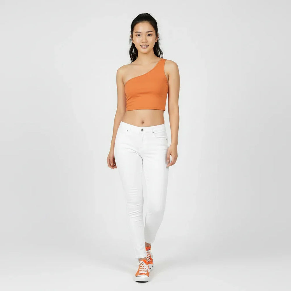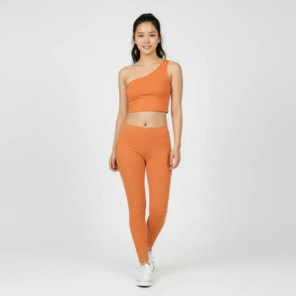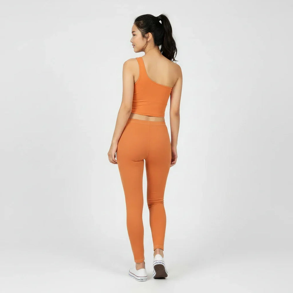 Turn heads in the Safrana Solid Series One-Shoulder Crop Top in Burning Orange. This bold asymmetrical silhouette hugs comfortably with smooth, stretchy fabric and a flattering cropped length—perfect for studio sessions, street styling, or nights out. Designed to mix and match, it pairs effortlessly with Safrana’s Print Series for a statement look or the Color Series for a sleek monochrome fit. Add instant energy to every outfit with this fiery, confidence-boosting essential.