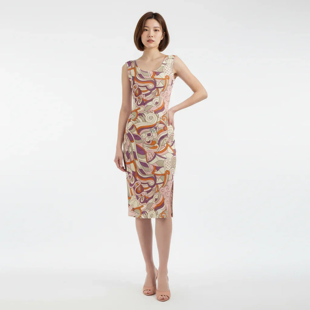 Step out in style with our stunning Amai Bodycon Split Leg Midi Dress. This luxurious dress boasts our unique Amai pattern, adding a touch of sophistication to any occasion. The flattering midi length and sleeveless design make it the perfect choice for any outing.