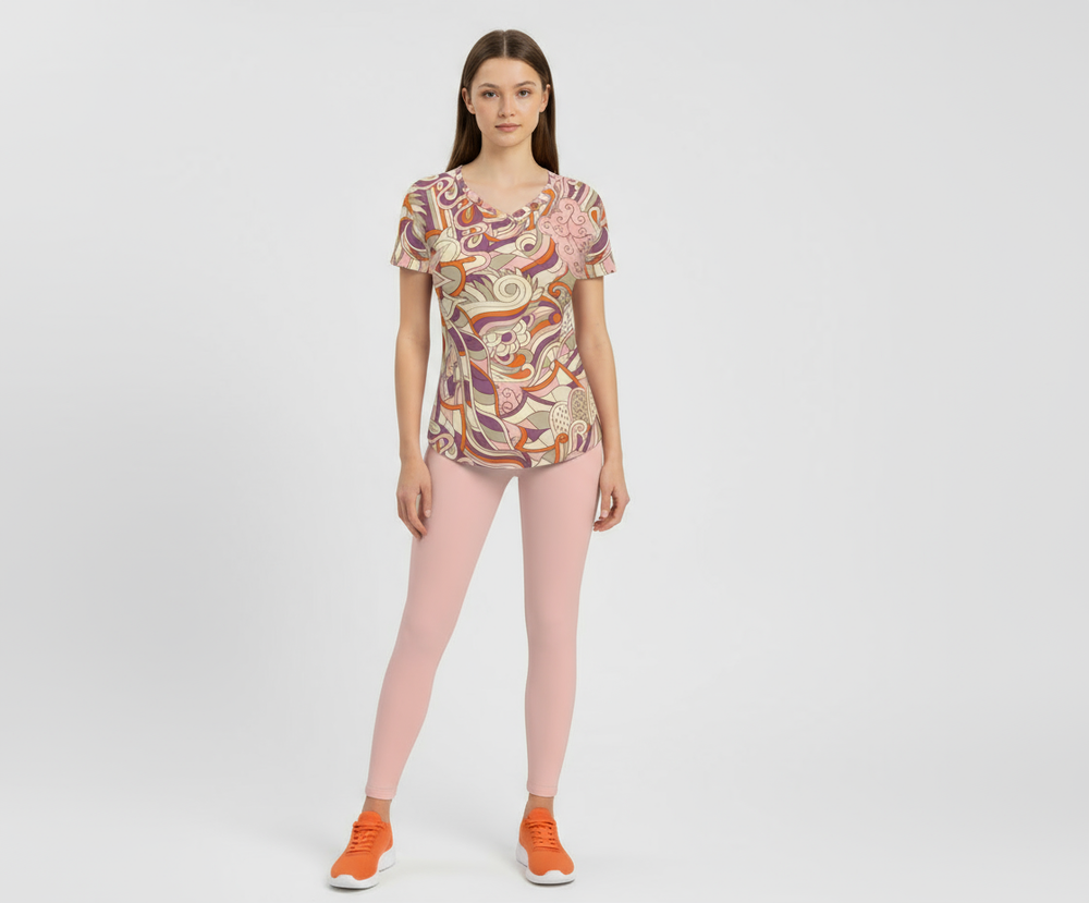 Meet the Amai Tango Orange V‑neck Tee—the lively pop of color your wardrobe’s been waiting for. This versatile women’s T‑shirt balances a clean, elongating V‑neck with a flattering curved hem and easy short sleeves, making it an effortless choice from weekday layering to weekend lounging. Crafted in your choice of premium fabrics for the feel you love, it drapes smoothly, holds its shape, and brings instant energy to denim, tailored trousers, leggings, and more.