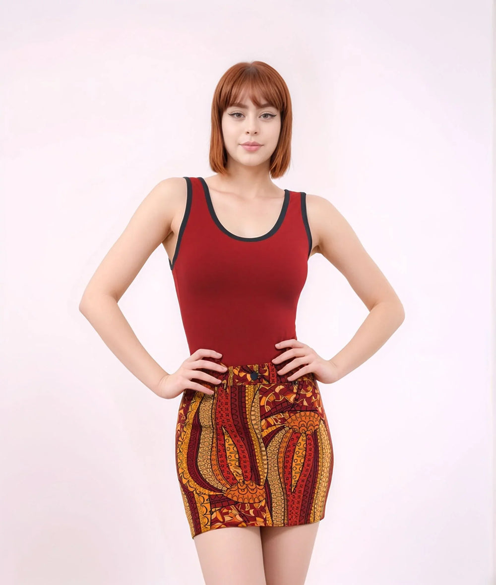 Unleash your bold side with the Ame Denim Skirt, a head-turning piece that perfectly marries style with comfort. Crafted with just the right amount of stretch, this skirt hugs your curves without feeling restrictive—making it your new go-to for effortless all-day wear. The rich mosaic of fiery red, marigold, and golden-yellow hues brings instant energy to any outfit, guaranteeing compliments wherever you go.
