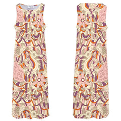 Experience the flawless fusion of vibrant and subtle shades like Pink, Tango Orange, Milk Punch, Strikemaster Violet, Coral Reef Yellow Orange, and Janna Yellow. The captivating combination of these hues produces a visually stunning and cohesive aesthetic in this dress.
