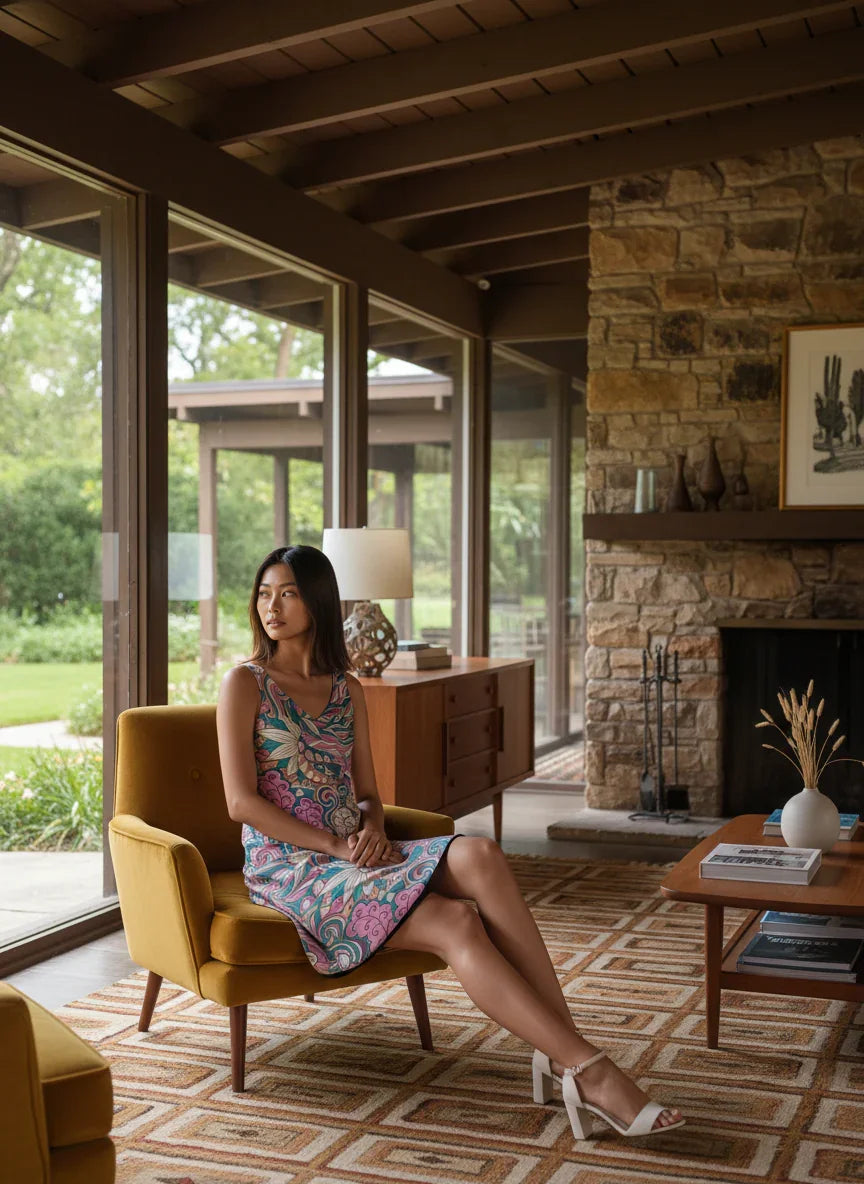 Make a statement with our Profonde Collection Reversible Dress, a refined piece that seamlessly provides two sophisticated and unique looks. Show off the captivating Arane print on the front, or choose a timeless black appearance by wearing it inside out. This luxurious dress effortlessly combines versatility and elegance, making it an essential addition to your wardrobe.