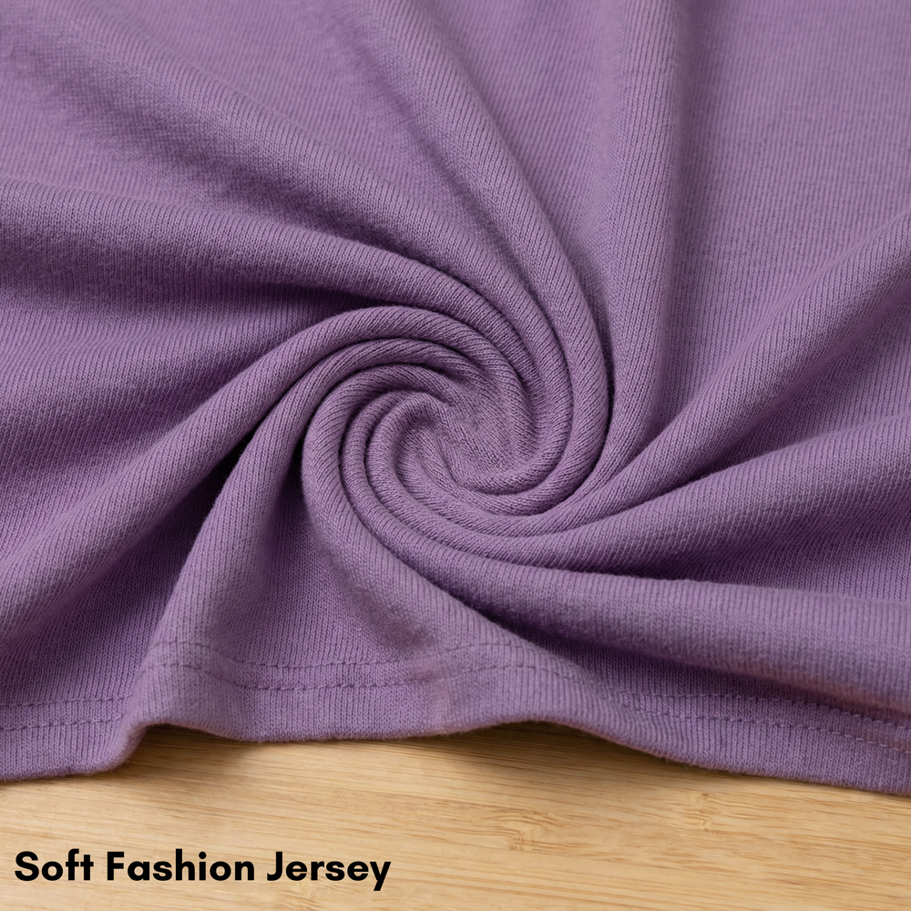 Fashion Jersey: (96% Polyester 4% Spandex) This soft and flexible jersey has a beautiful weight and drape and lends itself perfectly to more a casual dress. If you are looking to create a more relaxed bodycon dress, then this jersey fabric is for you.