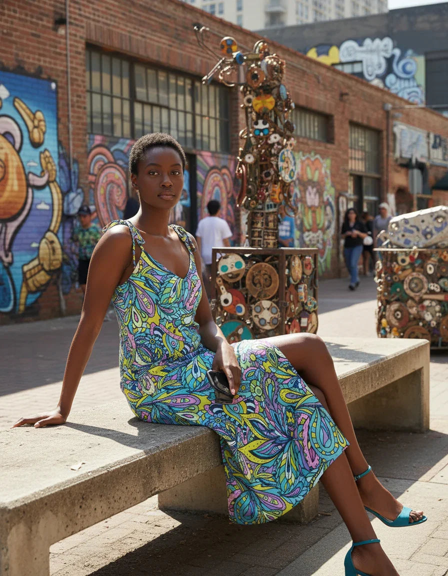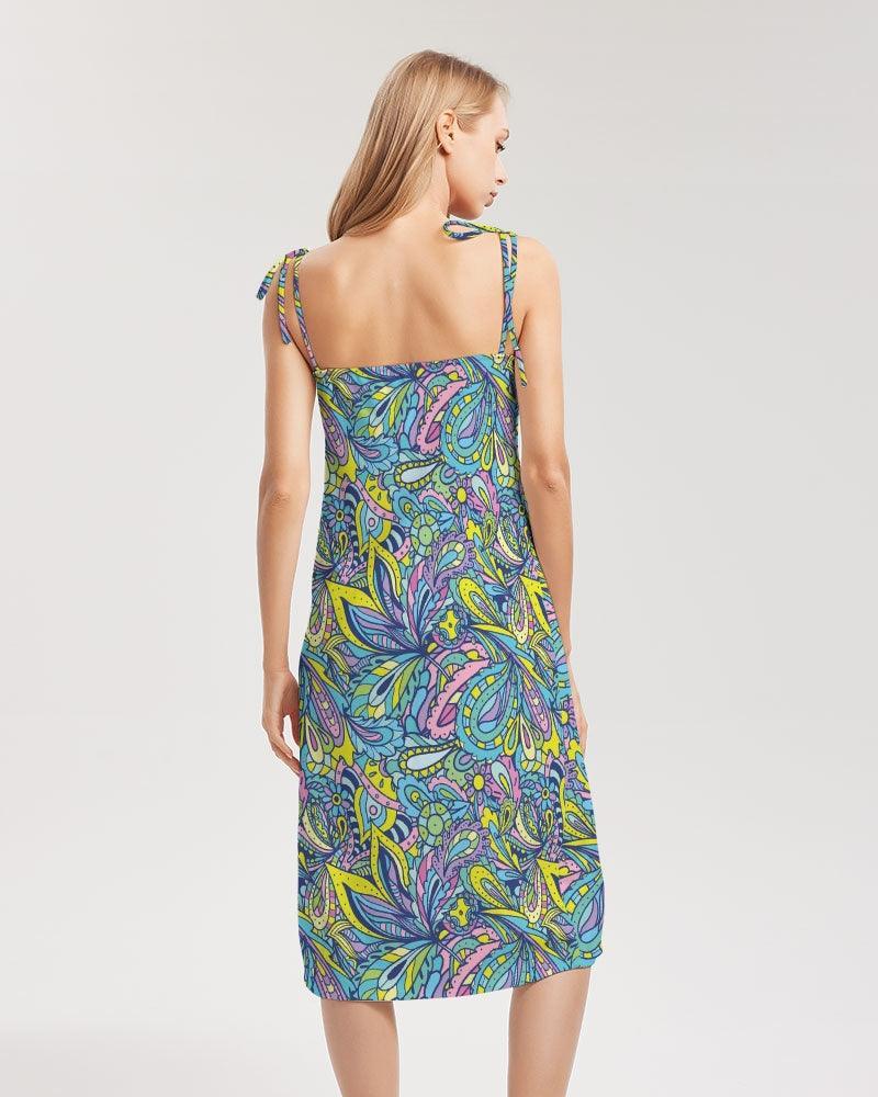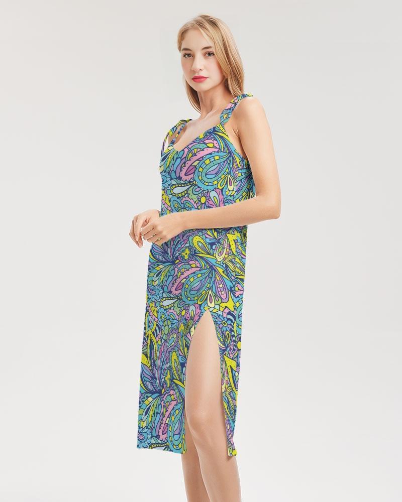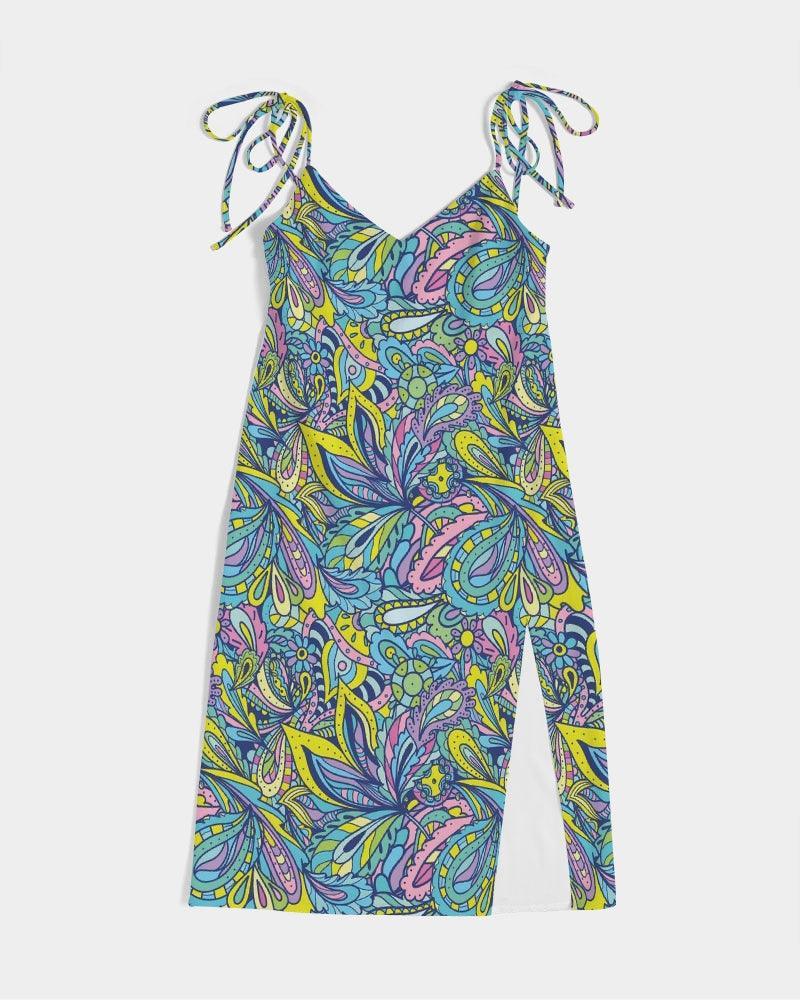Step into the season with a splash of color and vibrancy wrapped in this enchanting sleeveless dress! Perfectly balancing comfort and style, this piece features a bold and intricate paisley pattern in a stunning blend of bright hues that are sure to turn heads and spark conversations. The flattering cut gracefully accentuates your figure while providing enough stretch for ease of movement. Whether sashaying through a garden party or enjoying an evening out, this mid-length dress, complete with a flattering split at the side, offers a modern yet timeless silhouette.