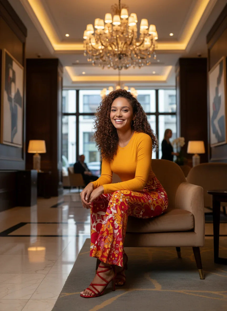 Visualize a vibrant sunset filled with blazing Torch Red and Tree Poppy Orange tones, emanating warmth and joy with hints of fiery Crimson Red and Sunglow Yellow Orange. The lively energy of Tickle Me Pink blends perfectly with the reassuring embrace of Papaya Whip, guaranteeing your presence will not only be seen, but felt.