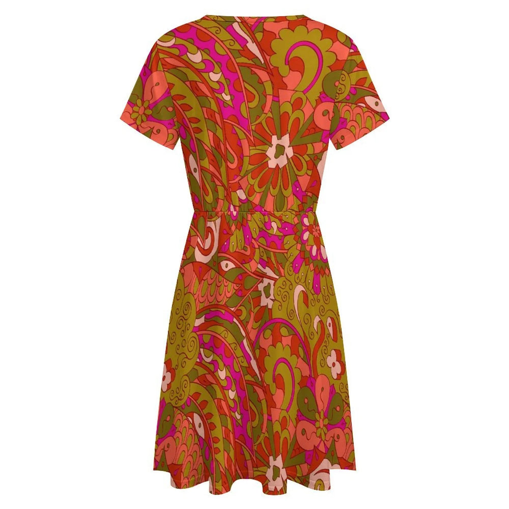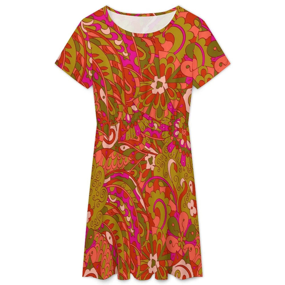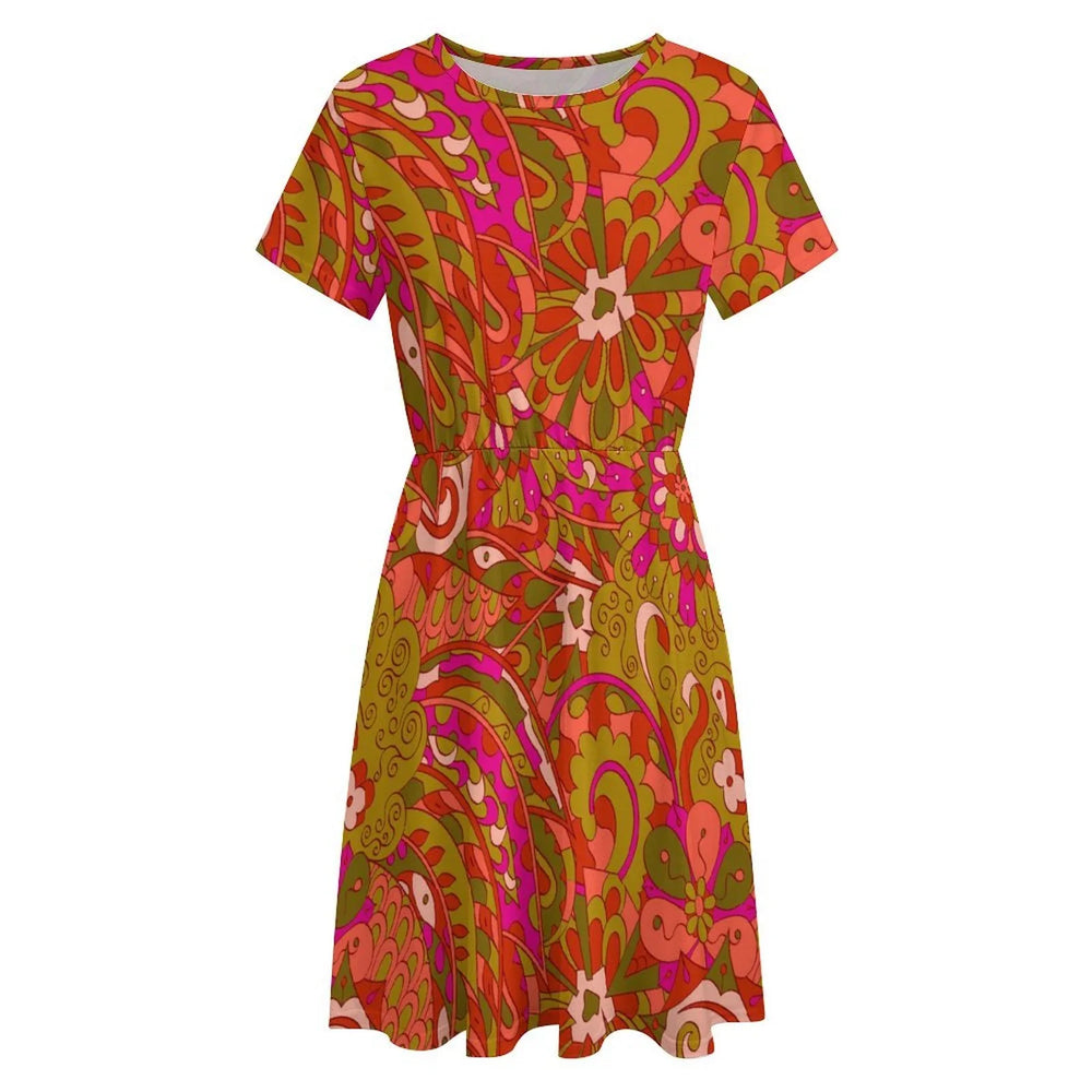 Bring your wardrobe to life with our eye-catching Mina Print Dress, designed for women who love to stand out with confidence and style. Featuring a vibrant boho-inspired floral pattern in lively hues of pink, orange, and green, this playful yet sophisticated short sleeve A-line dress flatters every figure while keeping you comfortable all day long.