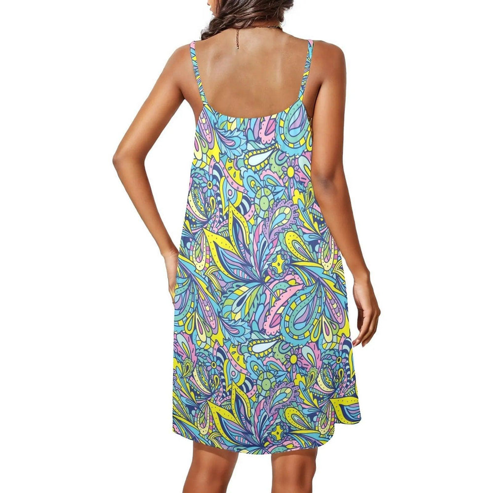Unlock the enchantment of summer with our Cenala Drawstring Neck Sleeveless Dress. The vibrant print, drawing inspiration from free-spirited psychedelic and paisley patterns, infuses a whimsical allure into this light and alluring dress. Adorned with delicate spaghetti straps and a graceful A-line silhouette, this dress expertly showcases your shoulders and cascades elegantly to accentuate your figure. Pair with stilettos and statement pieces for a luxurious touch, or opt for a relaxed look with sandals and minimalist accessories for a carefree summer feel.