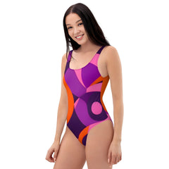 Explore the opulent world of our Airline series with this captivating swimsuit. See the mesmerizing blend of geometric patterns and vivid shades, from the elegant Clairvoyant Violet to the unique International Orange and Jagger & Eggplant Violet. Embrace the perfect combination of effortless movement and vibrant colors.