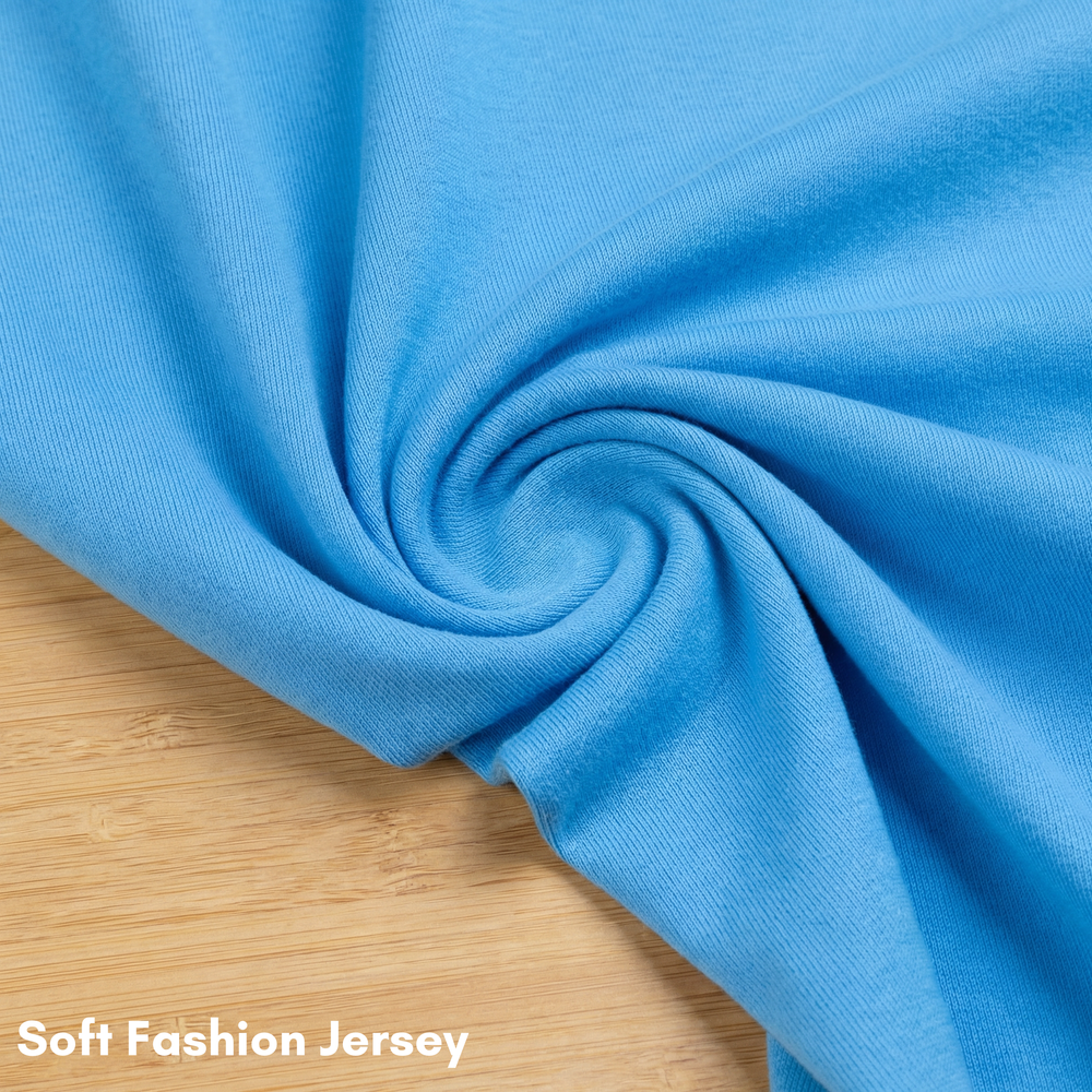 Fashion Jersey: (96% Polyester 4% Spandex) This soft and flexible jersey has a beautiful weight and drape and lends itself perfectly to more a casual dress. If you are looking to create a more relaxed bodycon dress, then this jersey fabric is for you.