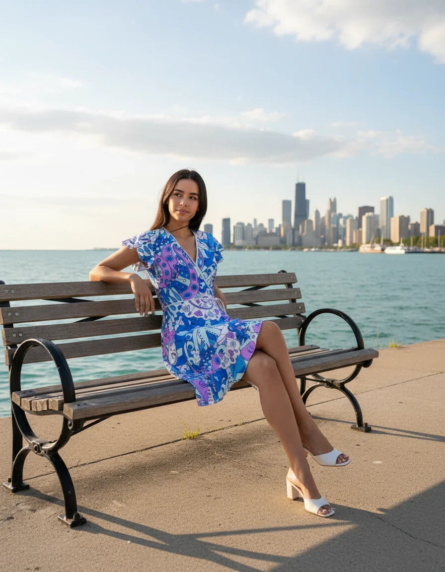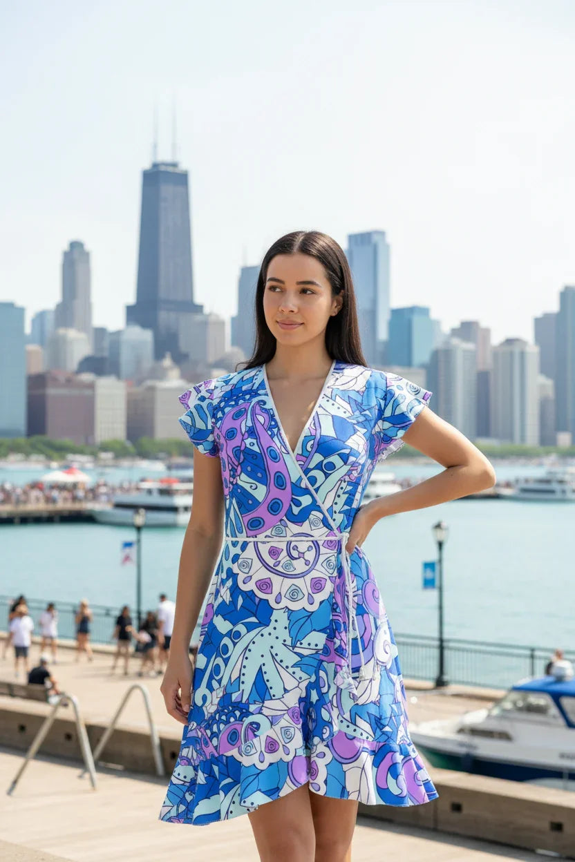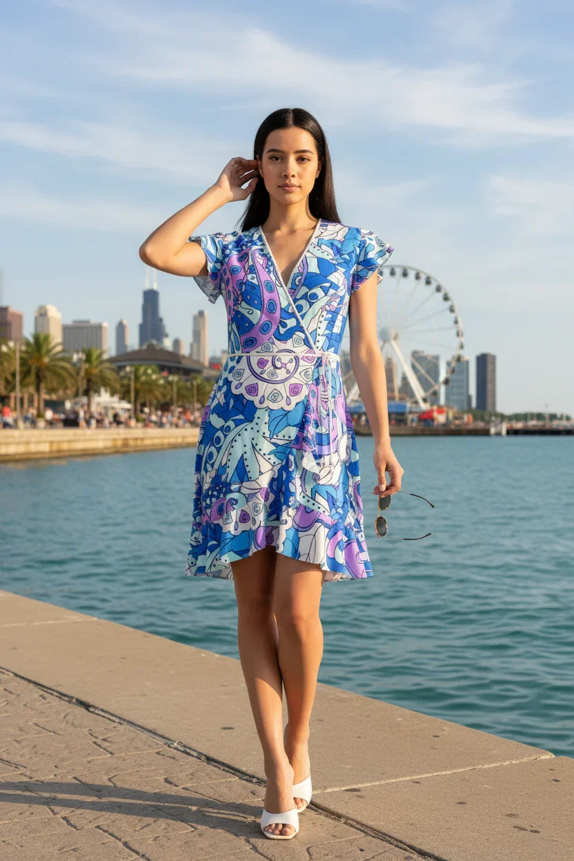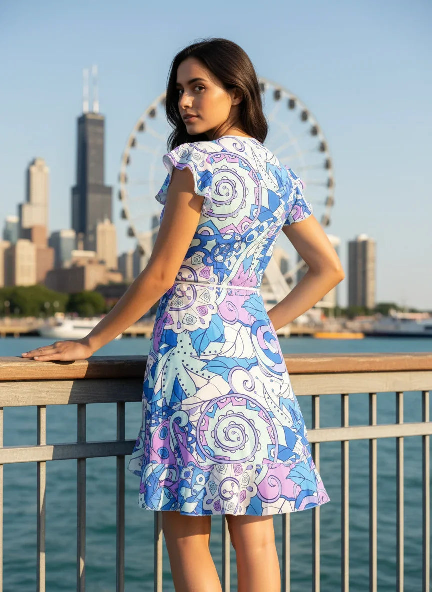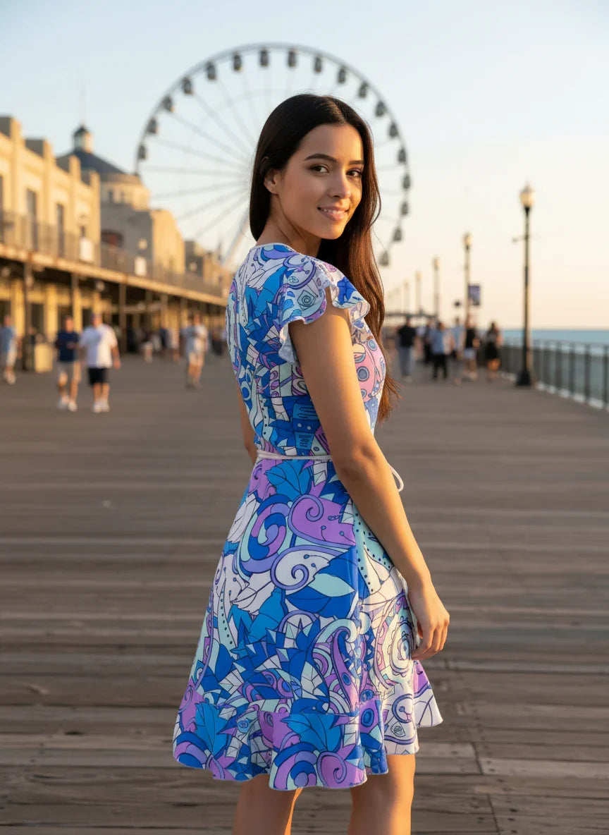 This luxurious dress has our vibrant abstract Imi print & a design that boasts a flounce hem and sleeves, giving it an extra dose of playfulness you’ll love. Bring some extra fun to your wardrobe with this super flattering wrap dress.