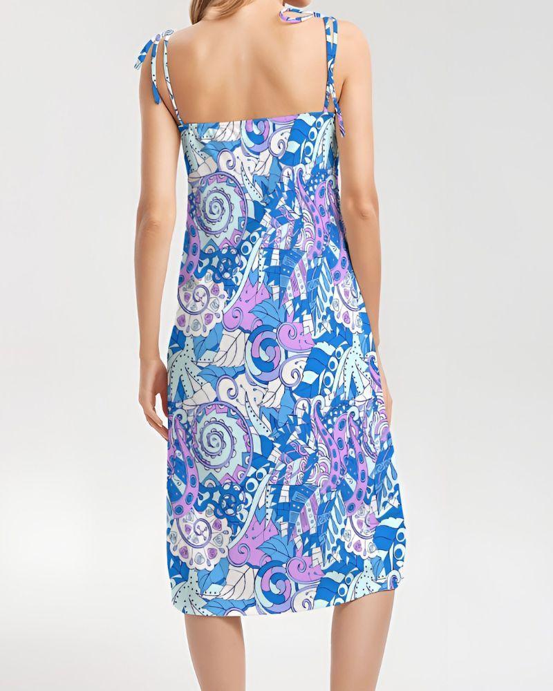 Step into the spotlight with our enchanting Vibrant Blue and Purple Imi Print Midi Dress. This stylish piece seamlessly blends playful patterns and breezy comfort, making it an essential addition to your summer wardrobe. Designed with a mesmerizing paisley print, this dress displays shades of blue and purple that evoke a sense of serene elegance.