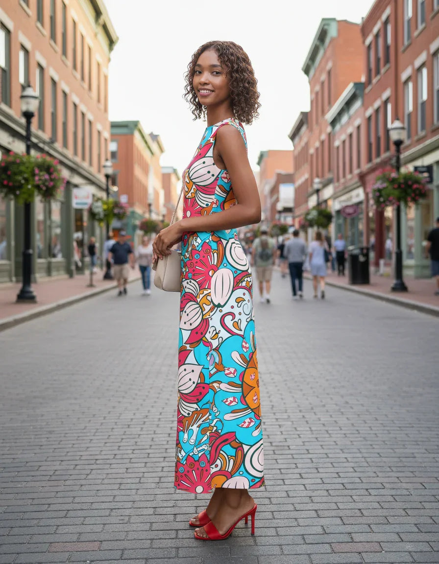 Swirling florals, ornate paisleys, and abstract organic elements come together in a mesmerizing ballet, evoking a sense of movement and storytelling. The pattern pulses with energy, like a journey through enchanted gardens and dreamlike landscapes, where every detail reveals a new layer of vivid hues and emotions. This design exudes confidence and individuality, making a striking statement.