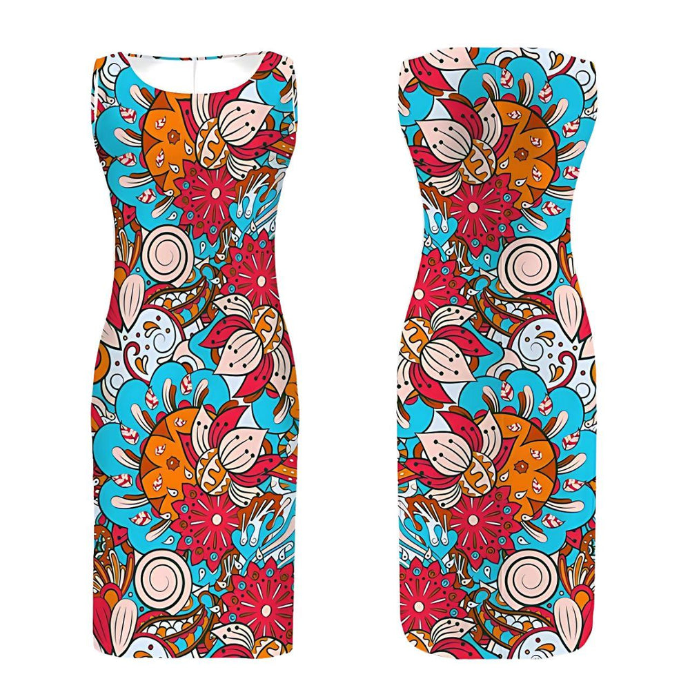 Step into a world of striking color and electric energy with the Inia Print Sheath Dress—a bold statement piece that celebrates vibrancy and confidence. Designed for the woman who refuses to blend in, this dress boasts an eye-catching explosion of artistic swirls and floral bursts in vivid hues of turquoise, coral, and citrus orange.