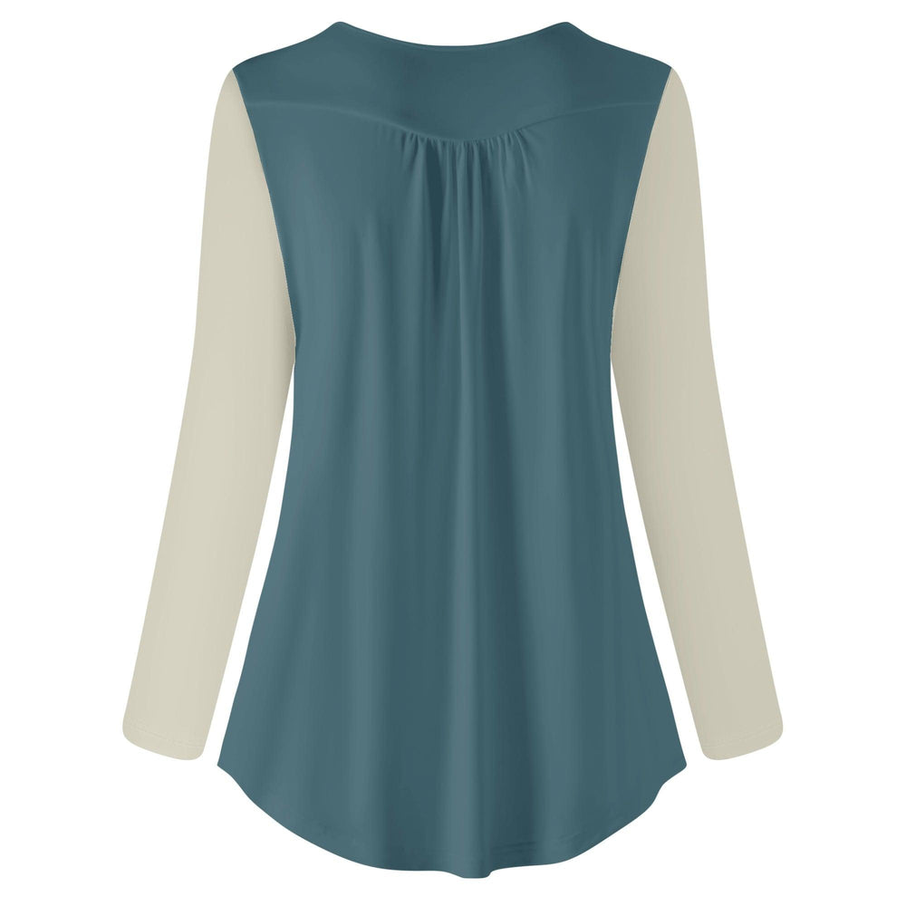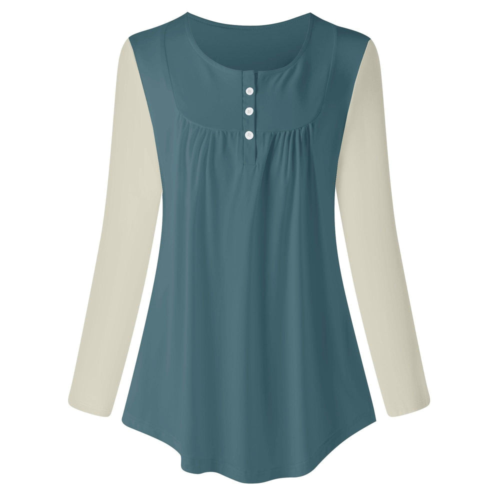 Indulge in the luxurious feel of the Kalei series top – a stunning blend of style and comfort designed to empower your everyday look. The sophisticated casal blue bodice, accented by elegant light green sleeves, creates a flattering color-blocked design that effortlessly transitions from day to night. The gentle, gathered neckline and subtle button detail add a touch of timeless charm, while the long sleeves offer both warmth and versatility. Crafted from a soft and breathable fabric, this top promises all-day comfort without compromising on style.