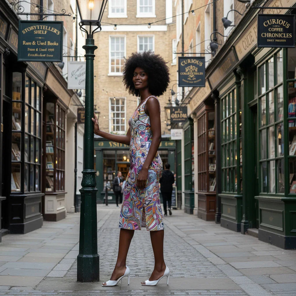 Are you bold and ready to make a statement? This Kyuka midi dress is the one for you! With a striking abstract multi-color print in eye-catching twists & turns, this sleek piece is the perfect stunner to wear on your next evening out.