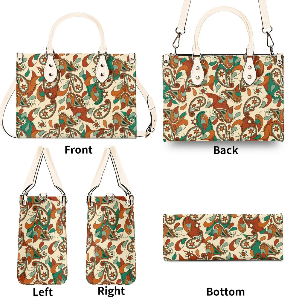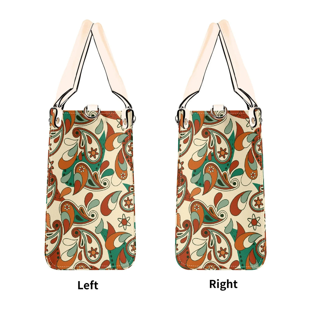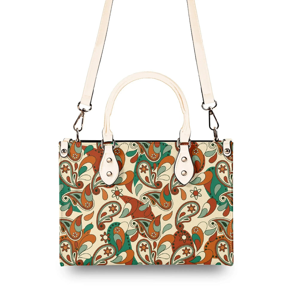 Elevate your everyday style with the captivating Lushka Print Box Satchel – a must-have accessory that blends retro vibes with modern sophistication! Inspired by lush, swirling paisley motifs in earthy tones of rich browns, vibrant greens, and creamy beiges, this eye-catching handbag features a bold, artistic print that's perfect for adding a pop of personality to any outfit. Crafted from premium PU leather, it's not only cruelty-free and durable but also water-resistant, ensuring it stands up to your busy lifestyle while maintaining that luxurious feel.