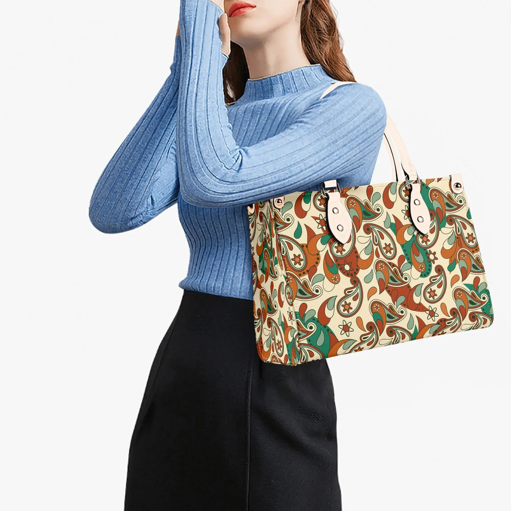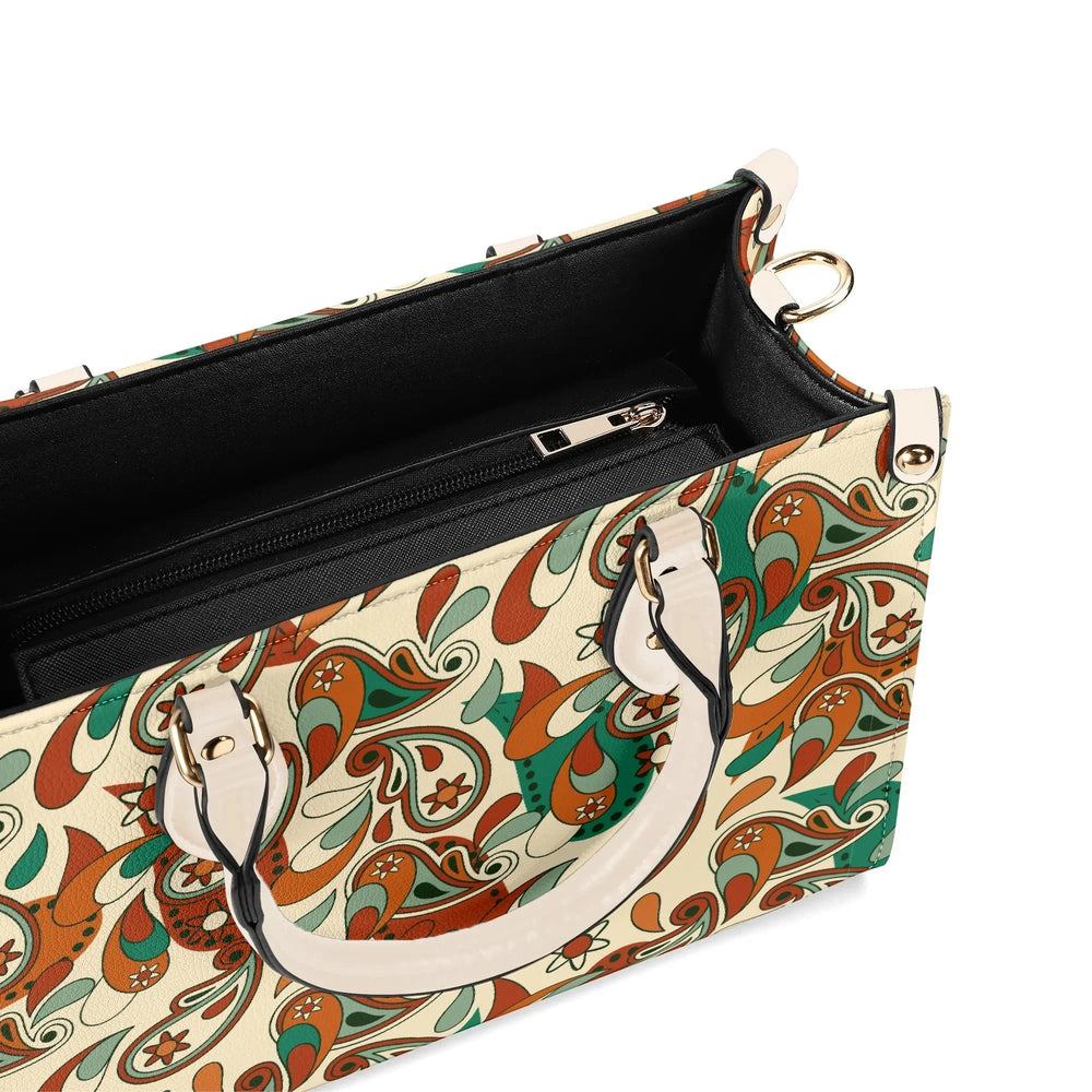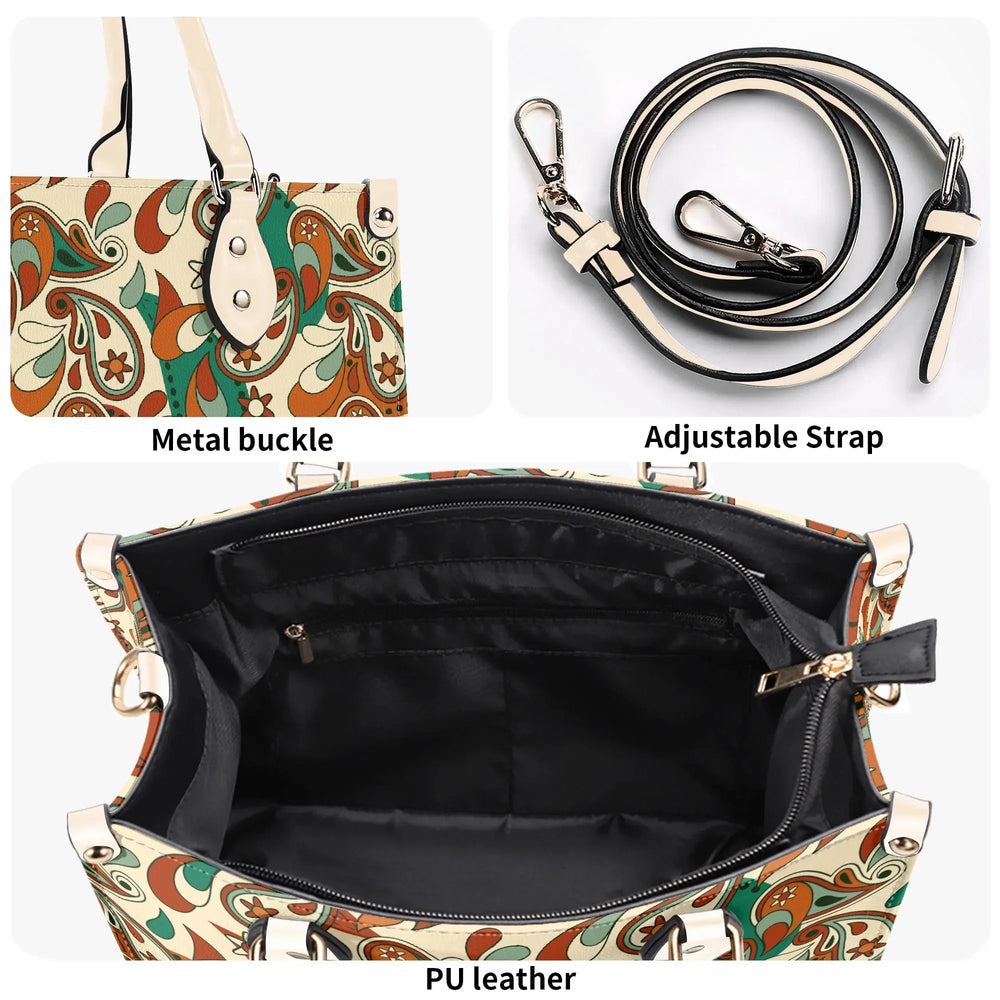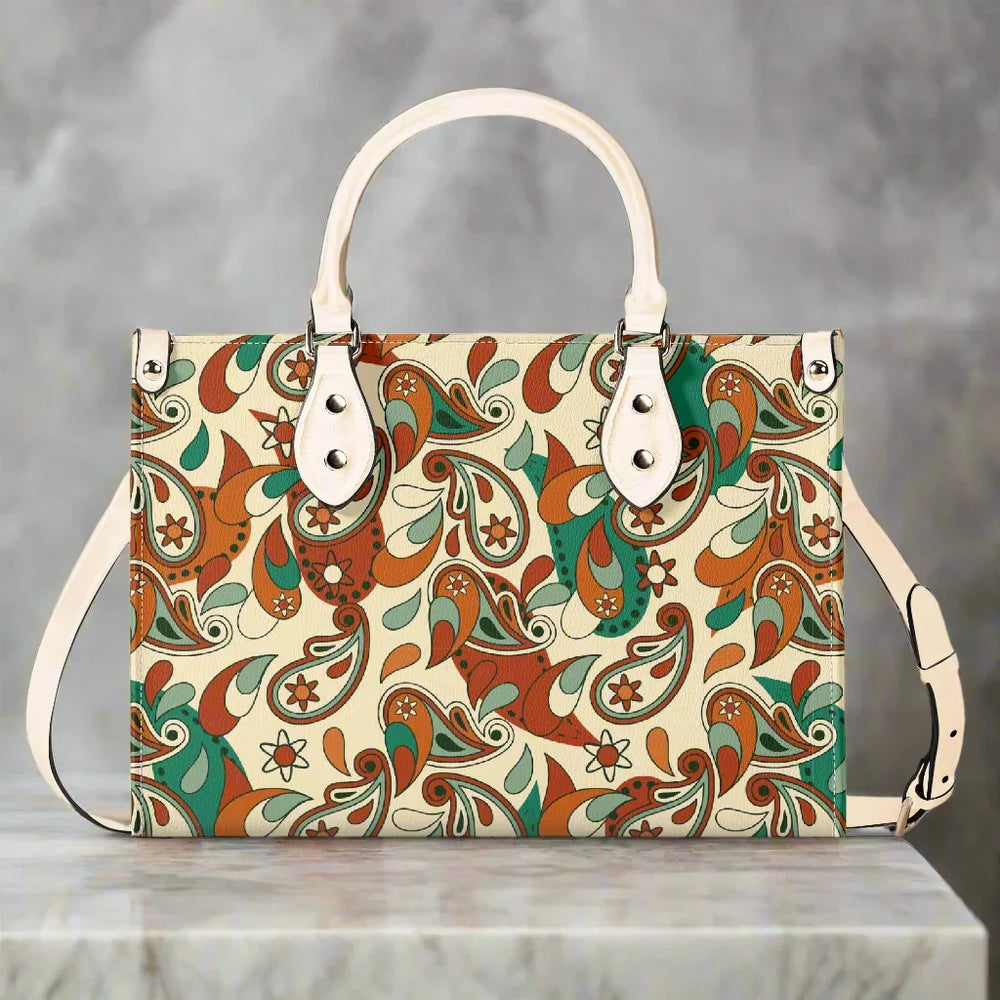 Elevate your everyday style with the captivating Lushka Print Box Satchel – a must-have accessory that blends retro vibes with modern sophistication! Inspired by lush, swirling paisley motifs in earthy tones of rich browns, vibrant greens, and creamy beiges, this eye-catching handbag features a bold, artistic print that's perfect for adding a pop of personality to any outfit. Crafted from premium PU leather, it's not only cruelty-free and durable but also water-resistant, ensuring it stands up to your busy lifestyle while maintaining that luxurious feel.
