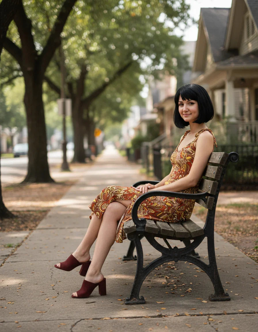 The intricate, flowing motifs and earthy yet vivacious color palette of our Miarna pattern make it a statement piece for any wardrobe. Warm colors convey a sense of energy and creativity, with the bold Pomegranate hue creating a strong foundation for the design and hinting at passion. Bright Sun Yellow adds bursts of liveliness and optimism, while Santa Fe and Pueblo Orange bring a balanced contrast of bright and muted shades. Together, they create a harmonious and stimulating combination, adding depth and adventurous spirit to the overall look. Finally, Maize Yellow brings a mellow and soothing warmth, tying all the shades together into one cohesive pattern. Our Miarna dress not only makes a visual impact, but also tells a story of vibrant landscapes and expressive artistry, truly embodying the essence of luxury and exclusivity in wearable art.