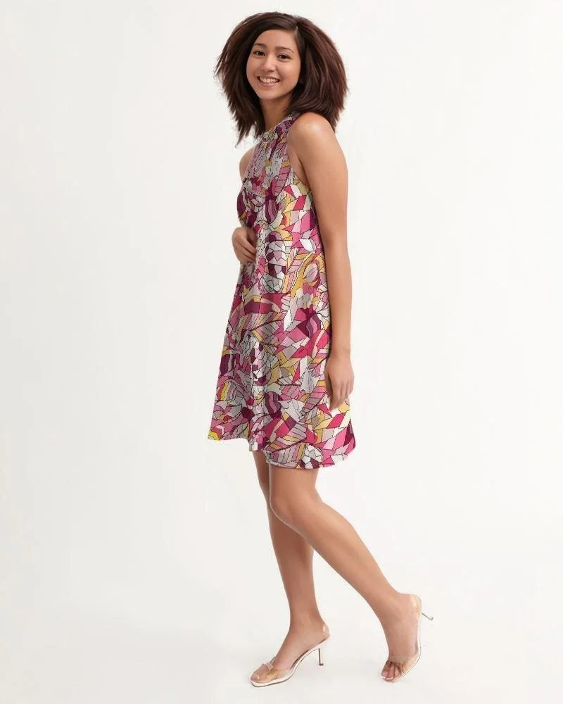 Add that flirty flare to your daily grinds or on the town nights with the striking Perl Halter Dress. The Perl has elegant and charming design details all over and a figure flattering fit & flare finish that will make you look dashing.