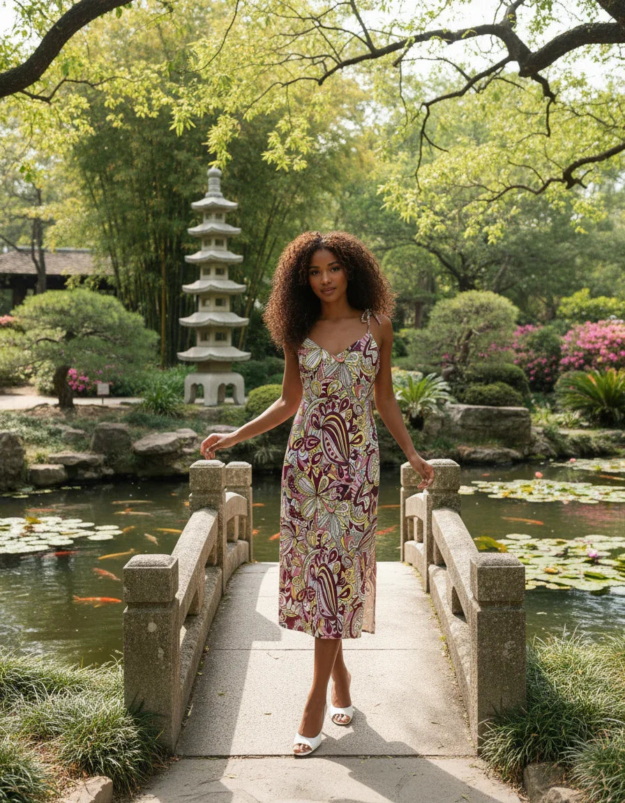 Our Pika Print is where playful meets polished. A jubilant swirl of Sweet Pink, Sazerac Orange Brown, Vis Vis Yellow, and grounded Eggplant Violet creates a retro-bohemian statement that flatters in every light. The oversized botanical-paisley motif dances across the body, striking the perfect balance between bold color and feminine curves. Inspired by whimsical, swirling motifs reminiscent of 70s psychedelia, it’s the print that turns brunches into photo ops and date nights into compliments.