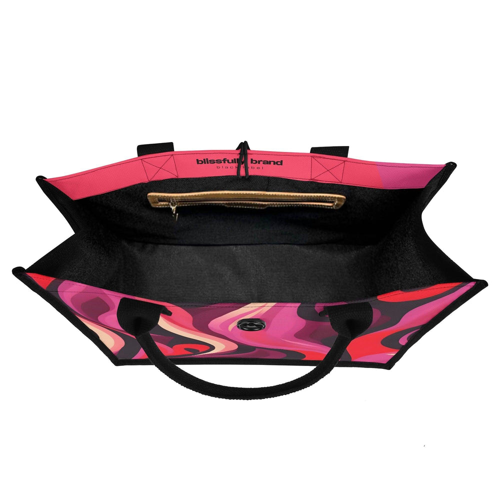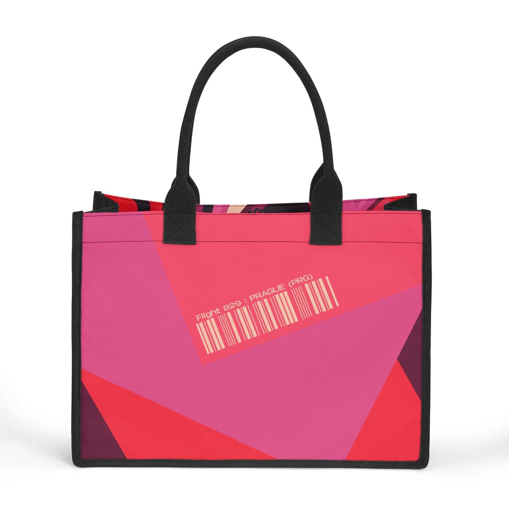 Discover the irresistible allure of our Prague Airline Series print - where daring artistry meets the vivaciousness of refined femininity. This extraordinary tote showcases a captivating design in Torch Red, Black Rose, Radical Red, and Cerise Pink Red, each color evoking a story of elegance and boldness. Experience the gentle embrace of Apricot Peach and Cocoa Brown, effortlessly woven together to form a warmly welcoming and intriguing aesthetic. The design then blossoms into a floral dream with Hibiscus Violet, exuding a sense of enchanting grace and intrigue. For the woman who defies convention and exudes confidence with every step, this tote is a timeless symbol of luxury. Let each brushstroke of color tell your unique style story and embody chic exclusivity wherever you go.