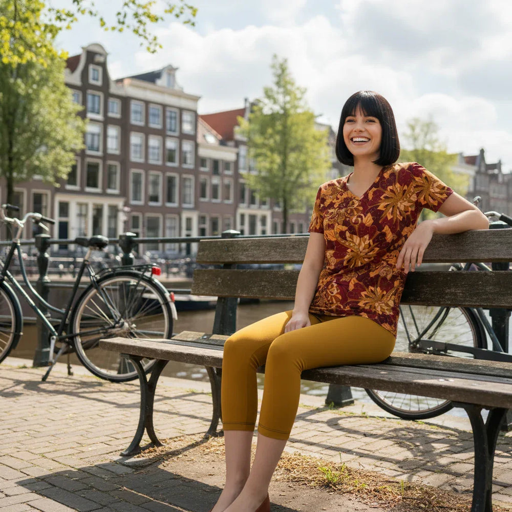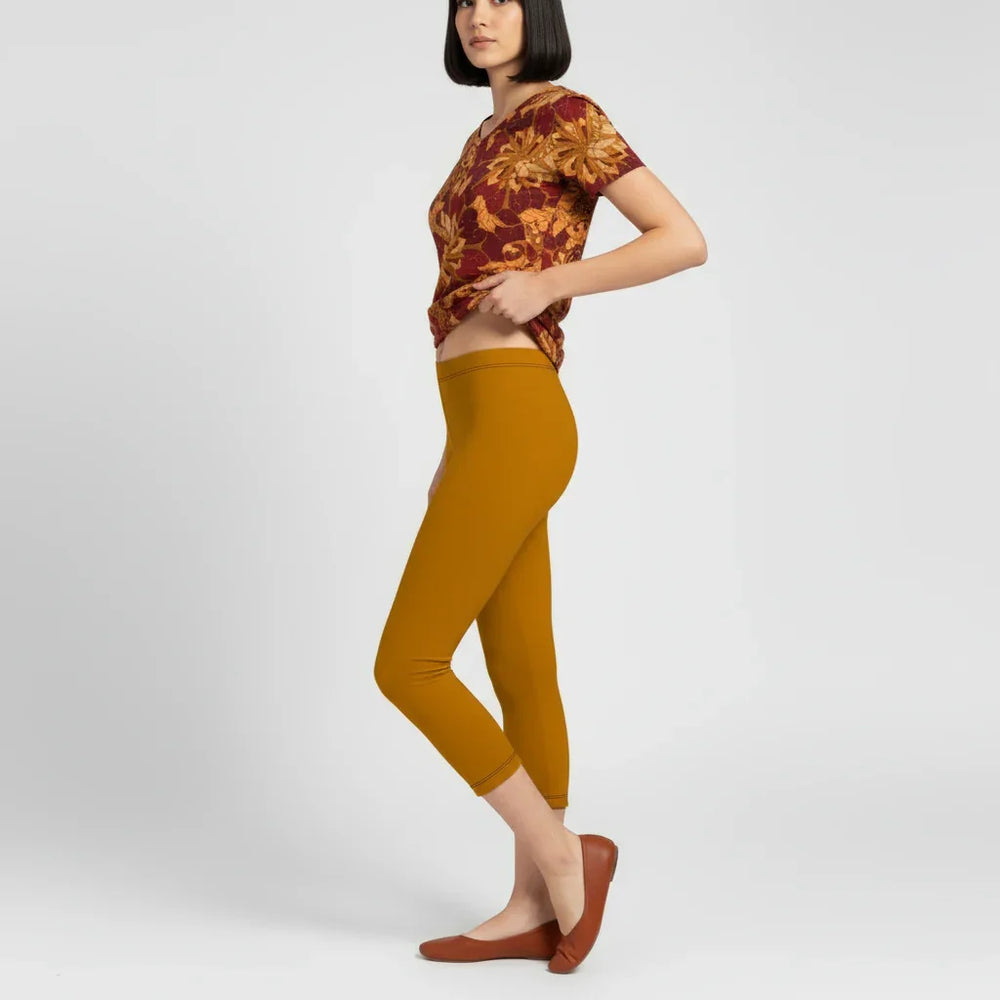 Your new must-have capri leggings are waiting! Add this stunning deep Indochine orange to your casual or workout wardrobe, and feel comfy all day from the smooth and buttery soft Lycra Spandex.