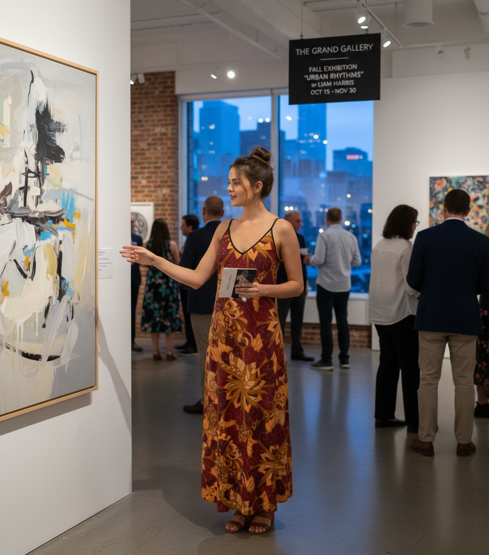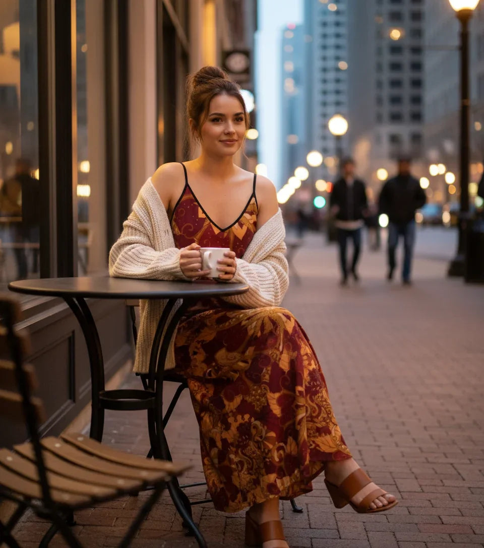 Experience our alluring Renai Print, where delicate arabesques envelop you in a luxurious world of whimsical refinement, as if written in flowing calligraphy. Playful botanical elements, add a charming touch, while a vibrant floral starburst design demands attention with its fiery autumn hues.