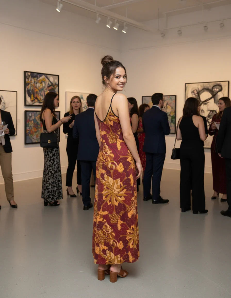 .Our Renai Maxi Dress is ready to become your new statement piece. The elegant silhouette is flattering, while the bold & robust all-over abstract paisley floral print takes center stage. Handmade from a choice of 3 luxurious fabrics from smooth light crepe to lavish silk satin, you'll be sure to have this ready to go for any occasion!