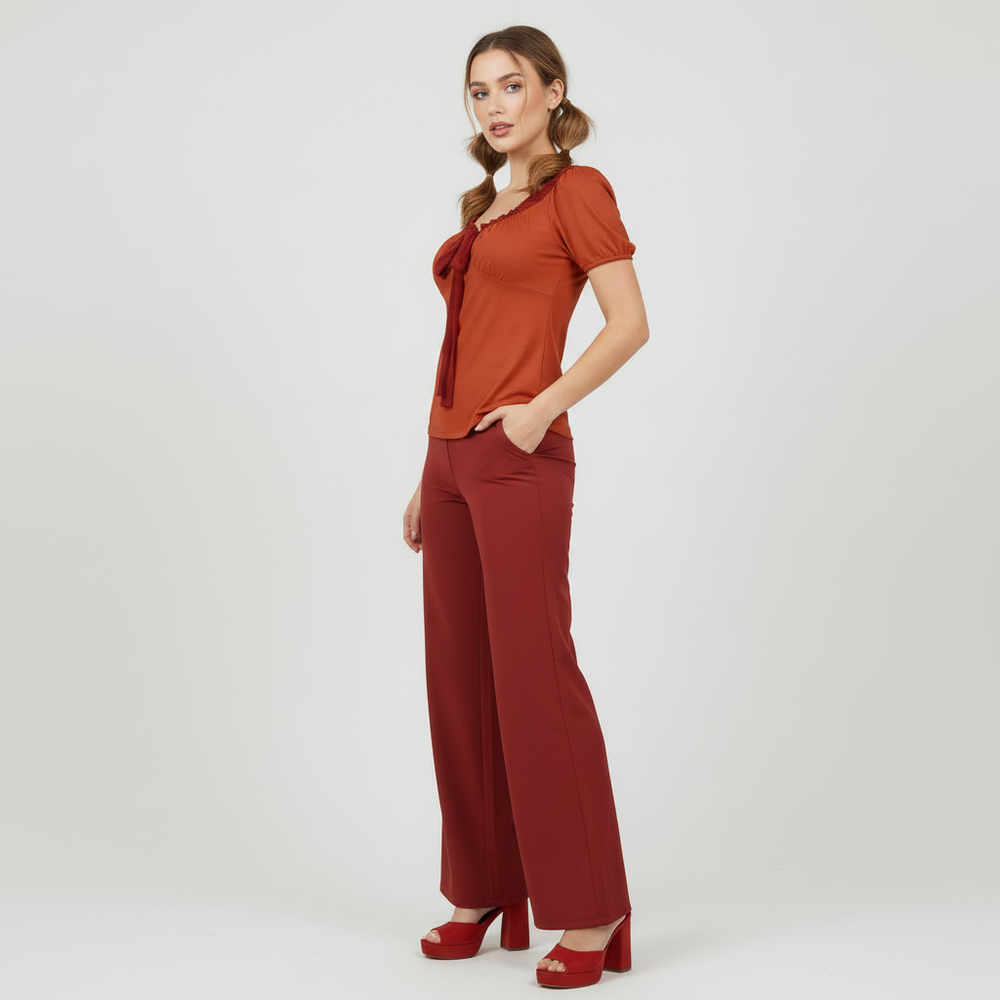 Pair them seamlessly with our Safrana Print Series for a bold, patterned statement or mix with the Safrana Color Series for a cohesive, monochromatic vibe – think vibrant reds and earthy tones that scream modern fashionista! Perfect for transitional seasons, these wide-leg wonders transition effortlessly from office meetings to evening outings, offering breathable comfort and a luxurious flow that moves with you. Don't just wear pants – make a statement.