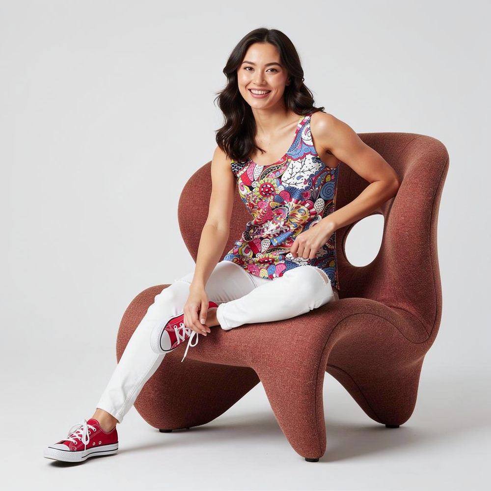 There are tops that complete a look — and then there is the Sechia Print Round Neck Tank Top, which is the look. The moment you pull this on, the decision is made. You have arrived.
