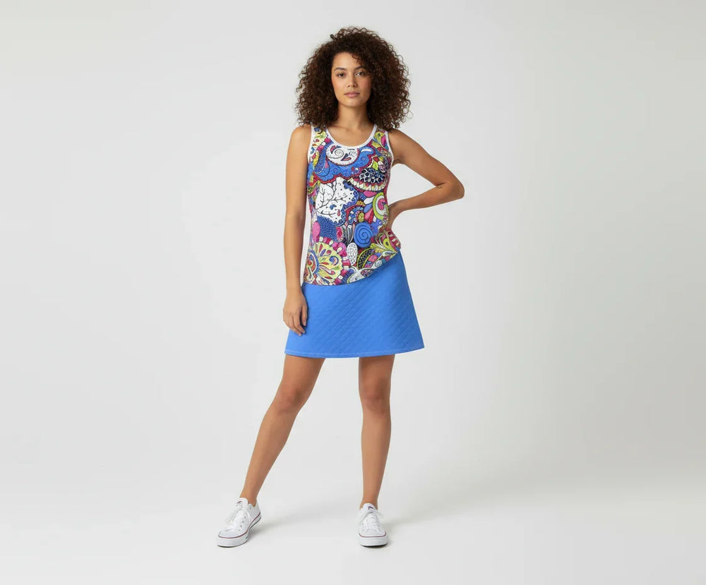 Elevate your wardrobe with the captivating Sechia Print Tank Top – a burst of psychedelic energy designed for the bold and adventurous fashionista! This scoop neck tank top features a mesmerizing all-over print inspired by swirling paisleys, vibrant florals, and abstract motifs in a kaleidoscope of electric pinks, blues, yellows, and greens, evoking the free-spirited vibe of retro festivals and modern boho chic.