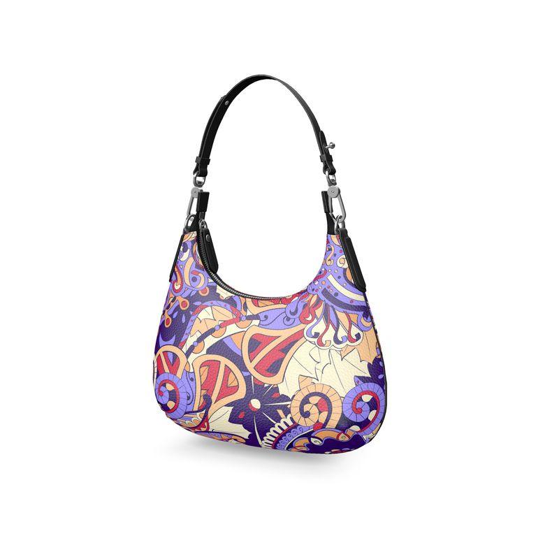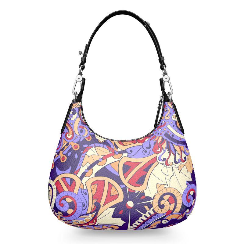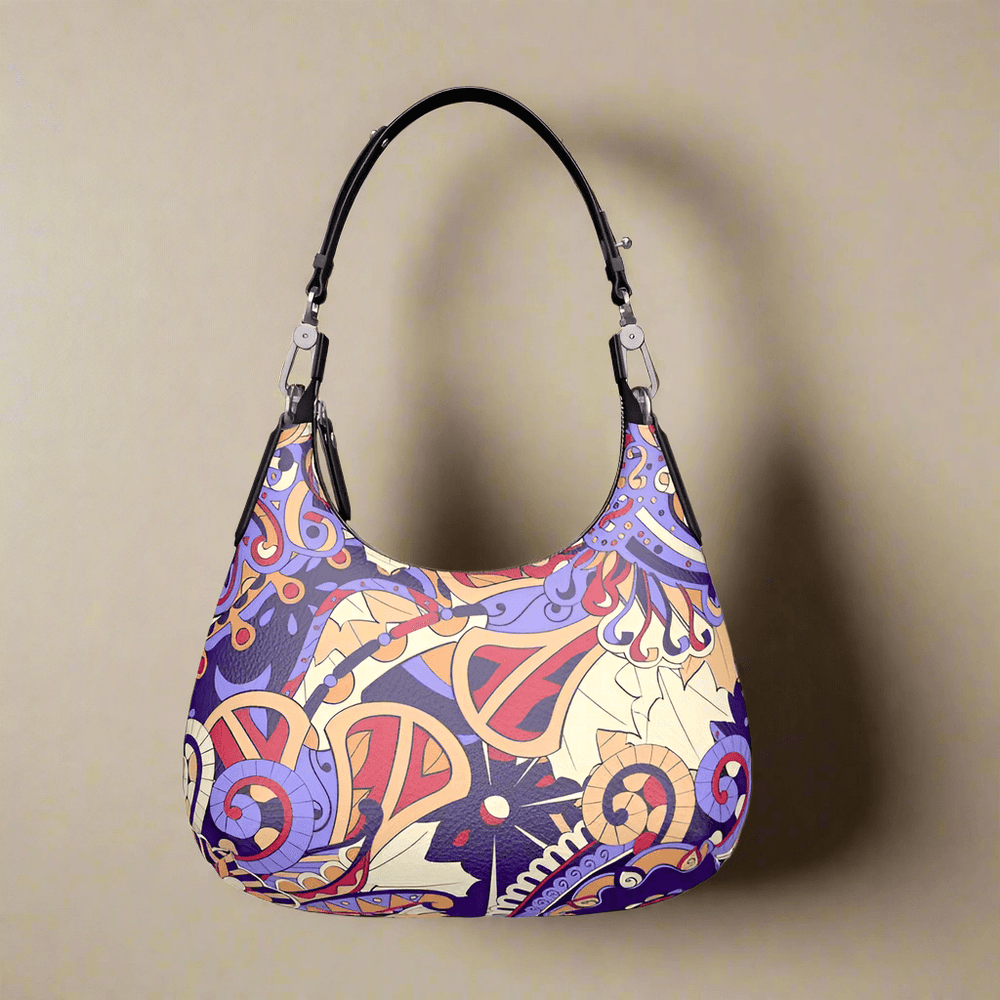 Crafted from the finest leather, this Sechie Mini Curved Moon Bag blends traditional Paisley patterns with opulent baroque-inspired designs, resulting in a breathtaking union. Every swirl, teardrop, and floral motif adorns the handbag flawlessly, evoking a bohemian and vintage aura. A true testament to boho-chic aesthetics, this piece emanates liberation in every intricate stitch.