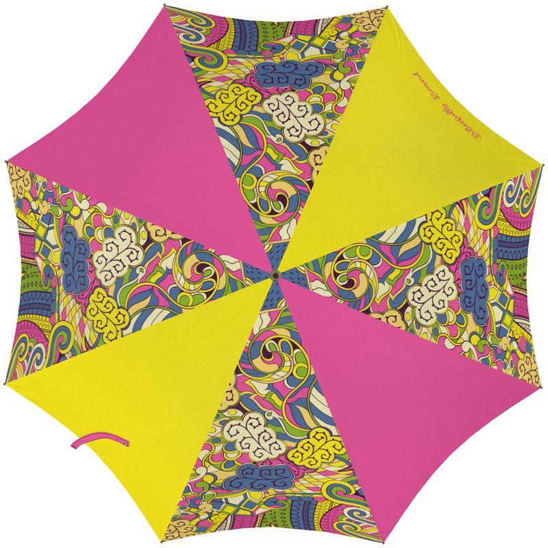 This English Style Umbrella boasts a retro-bohemian vibe that will captivate the senses with its bold colors and mesmerizing patterns - a nod to the rebirth of a bygone era in a modern world. The fusion of swirling lines, geometric shapes, and whimsical florals gracefully dance and undulate across the fabric, making this accessory as vibrant and dynamic as the user who dons it.