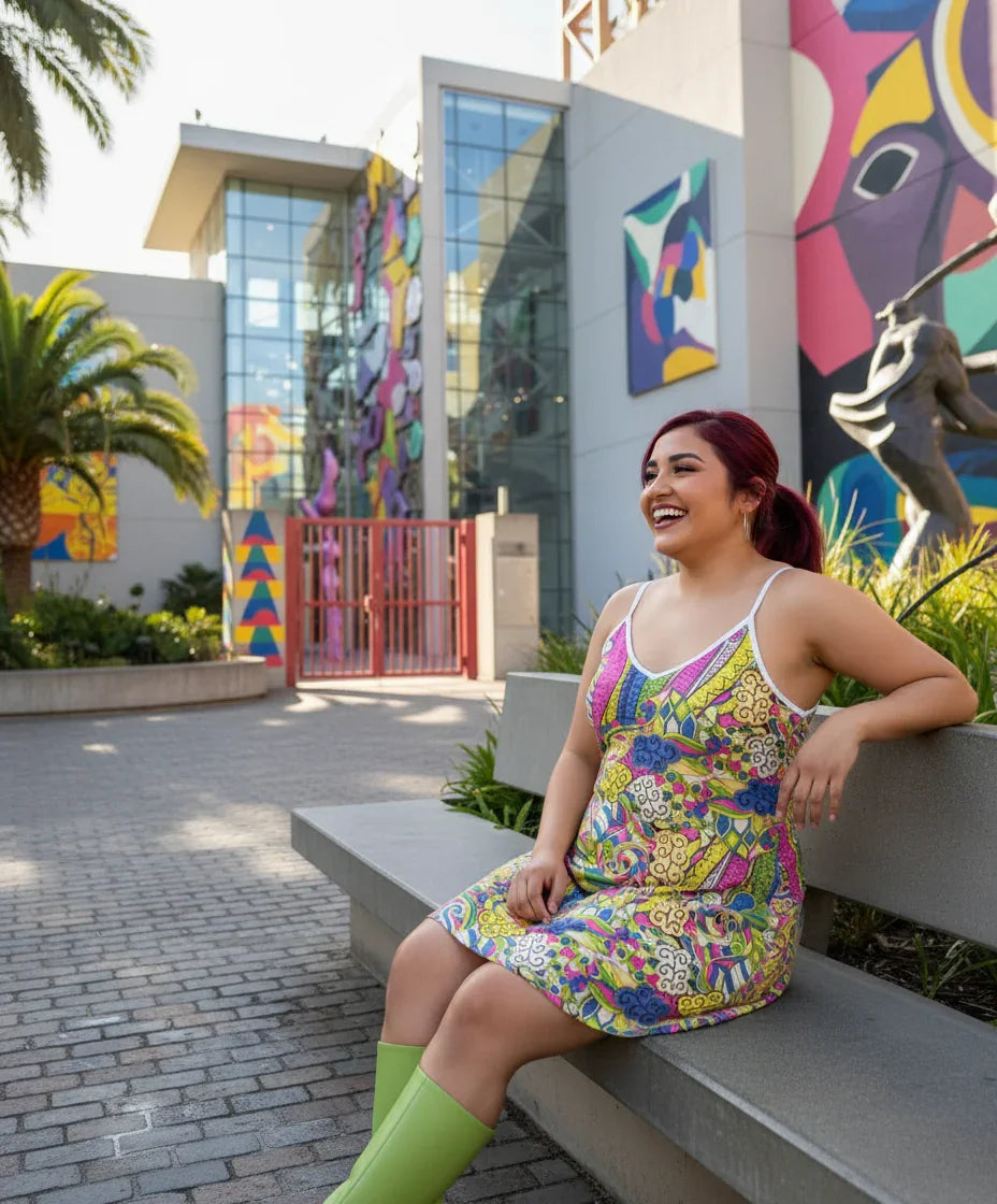 Indulge in a vibrant world of color and whimsy with our Suki mini slip dress, inspired by retro-bohemian fashion. This piece features a fusion of swirling patterns, geometric abstractions, and playful florals that dance and curl across the fabric, evoking a sense of nostalgia and dynamic energy. Embrace this exclusive and eye-catching dress to make a statement in the modern world.